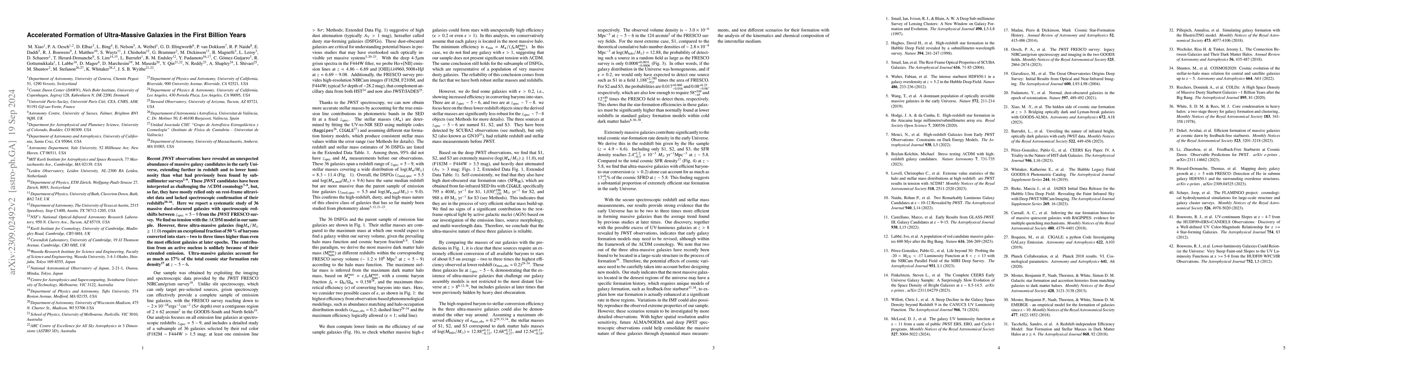 The JWST has identified a significant population of extremely massive, optically dark galaxies at $z\gtrsim3$, challenging current galaxy formation models. The first confirmed sample from the JWST FRESCO survey reveals ultra-massive galaxies at $z\sim5-6$ with stellar masses log$M_{\star}/M_{\odot}\gtrsim11.0$, indicating highly efficient early star formation.