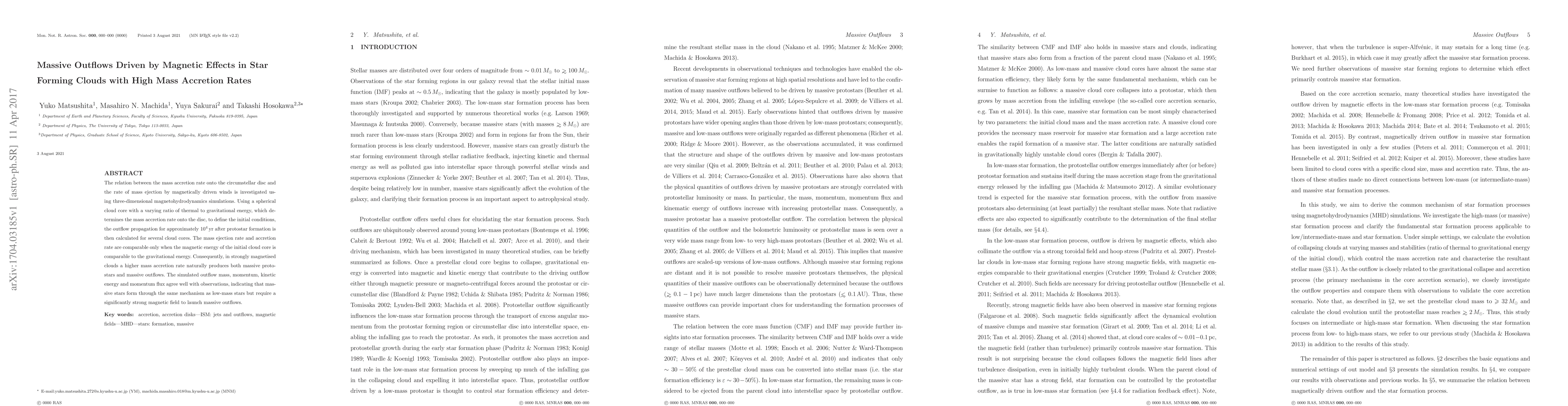 Research shows that massive stars form through a similar mechanism as low-mass stars, but require stronger magnetic fields to launch massive outflows. This process can produce both massive protostars and outflows with high mass, momentum, and energy.