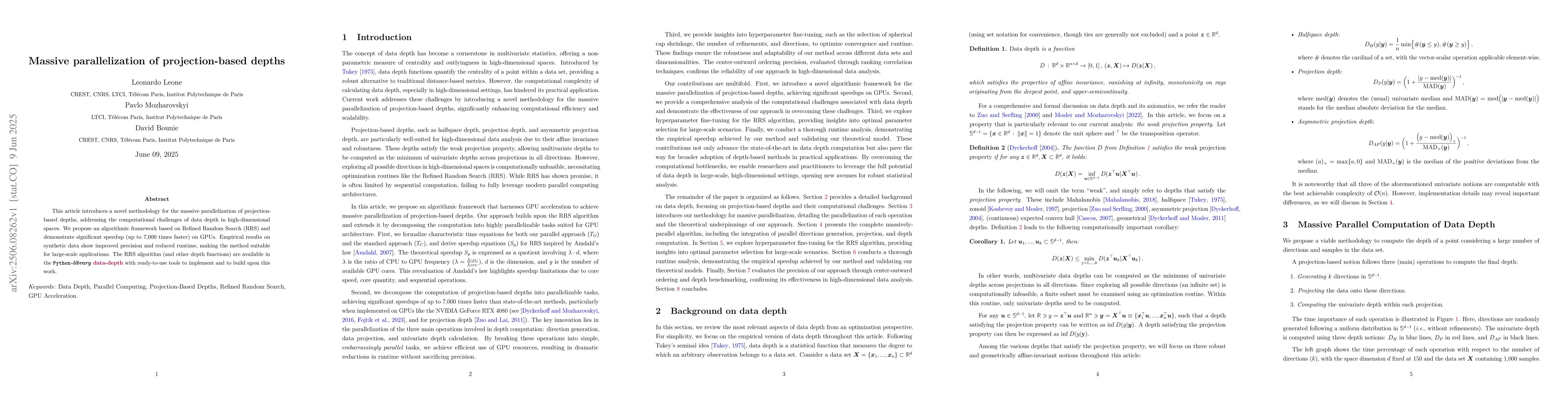 This article introduces a novel methodology for the massive parallelization of projection-based depths, addressing the computational challenges of data depth in high-dimensional spaces. We propose an algorithmic framework based on Refined Random Search (RRS) and demonstrate significant speedup (up to 7,000 times faster) on GPUs. Empirical results on synthetic data show improved precision and reduced runtime, making the method suitable for large-scale applications. The RRS algorithm (and other depth functions) are available in the Python-library data-depth (https://data-depth.github.io/) with ready-to-use tools to implement and to build upon this work.