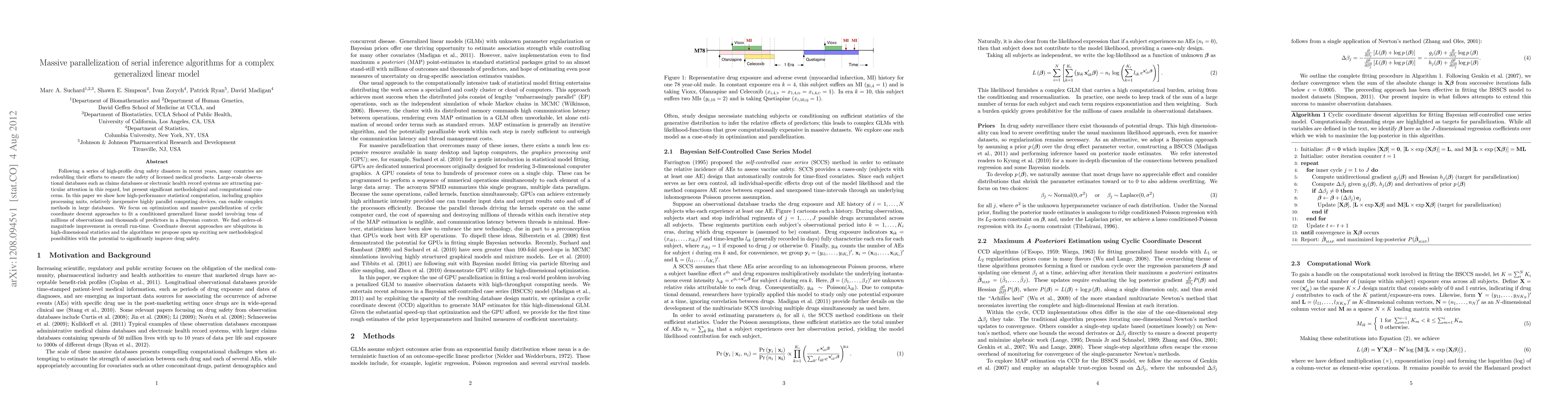 Following a series of high-profile drug safety disasters in recent years, many countries are redoubling their efforts to ensure the safety of licensed medical products. Large-scale observational databases such as claims databases or electronic health record systems are attracting particular attention in this regard, but present significant methodological and computational concerns. In this paper we show how high-performance statistical computation, including graphics processing units, relatively inexpensive highly parallel computing devices, can enable complex methods in large databases. We focus on optimization and massive parallelization of cyclic coordinate descent approaches to fit a conditioned generalized linear model involving tens of millions of observations and thousands of predictors in a Bayesian context. We find orders-of-magnitude improvement in overall run-time. Coordinate descent approaches are ubiquitous in high-dimensional statistics and the algorithms we propose open up exciting new methodological possibilities with the potential to significantly improve drug safety.