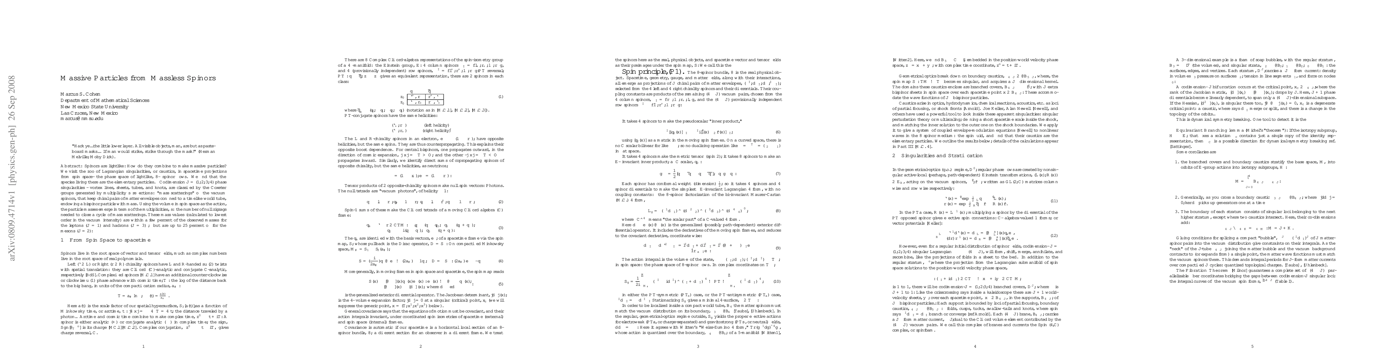 Spinors are lightlike. How do they combine to make massive particles? We visit the zoo of Lagrangian singularities, or caustics, in spacetime projections from spin space- the phase space of lightlike, 8- spinor flows. We find that the species living there are the elementary particles. Codimension J=(1,2,3,4) phase singularities - vortex lines, sheets, tubes, and knots, are classified by the Coxeter groups generated by multiplicity s reflections: "mass scatterings" off the vacuum spinors, that keep chiral pairs of matter envelopes confined to a timelike world tube, endowing a bispinor particle with mass. Using the volume in spin space as the action, the particle masses emerge in terms of the multiplicities, s: the number of null zigzags needed to close a cycle of mass scatterings. These mass values (calculated to lowest order in the vacuum intensity) are within a few percent of the observed masses for the leptons (J=1) and hadrons (J=3) ; but are up to 25 percent off for the mesons (J=2).