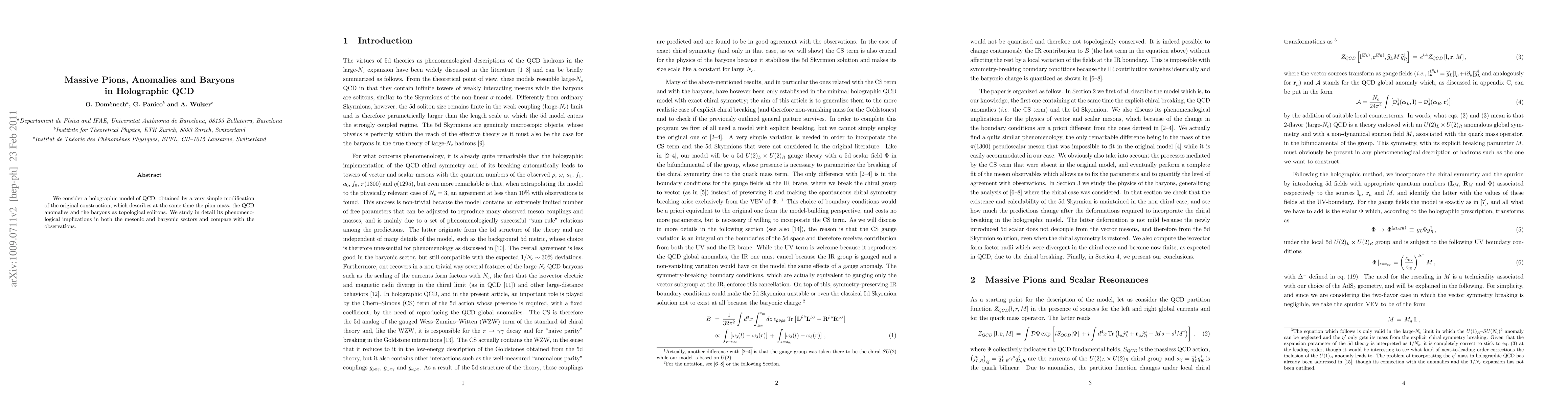 We consider a holographic model of QCD, obtained by a very simple modification of the original construction, which describes at the same time the pion mass, the QCD anomalies and the baryons as topological solitons. We study in detail its phenomenological implications in both the mesonic and baryonic sectors and compare with the observations.