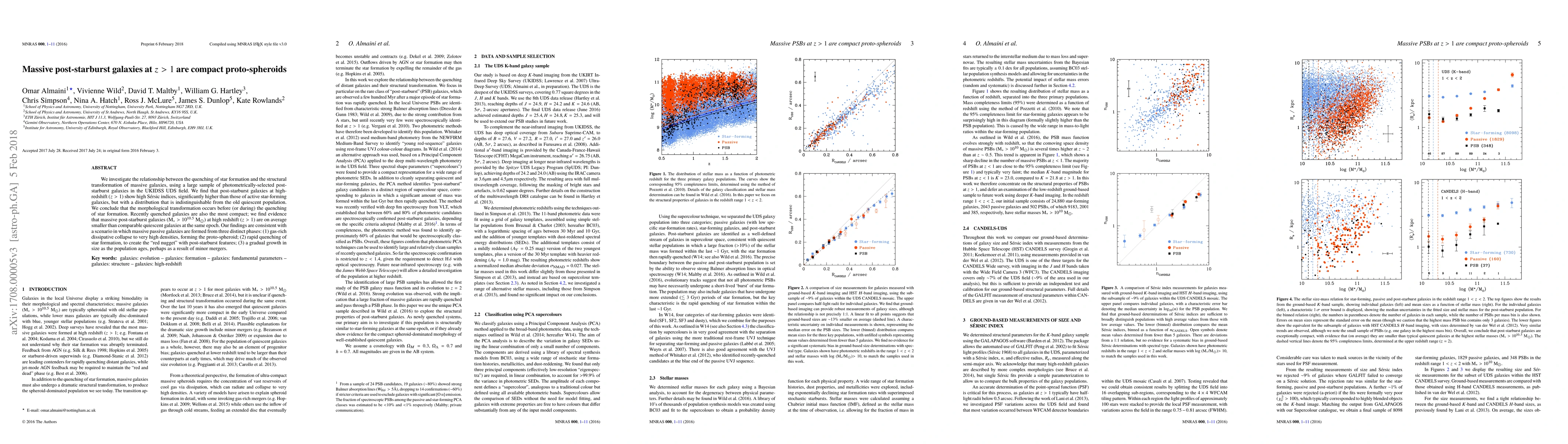 We investigate the relationship between the quenching of star formation and the structural transformation of massive galaxies, using a large sample of photometrically-selected post-starburst galaxies in the UKIDSS UDS field. We find that post-starburst galaxies at high-redshift ($z>1$) show high S\'ersic indices, significantly higher than those of active star-forming galaxies, but with a distribution that is indistinguishable from the old quiescent population. We conclude that the morphological transformation occurs before (or during) the quenching of star formation. Recently quenched galaxies are also the most compact; we find evidence that massive post-starburst galaxies (M$_{\ast}> 10^{10.5} ~$M$_{\odot}$) at high redshift ($z>1$) are on average smaller than comparable quiescent galaxies at the same epoch. Our findings are consistent with a scenario in which massive passive galaxies are formed from three distinct phases: (1) gas-rich dissipative collapse to very high densities, forming the proto-spheroid; (2) rapid quenching of star formation, to create the "red nugget" with post-starburst features; (3) a gradual growth in size as the population ages, perhaps as a result of minor mergers.