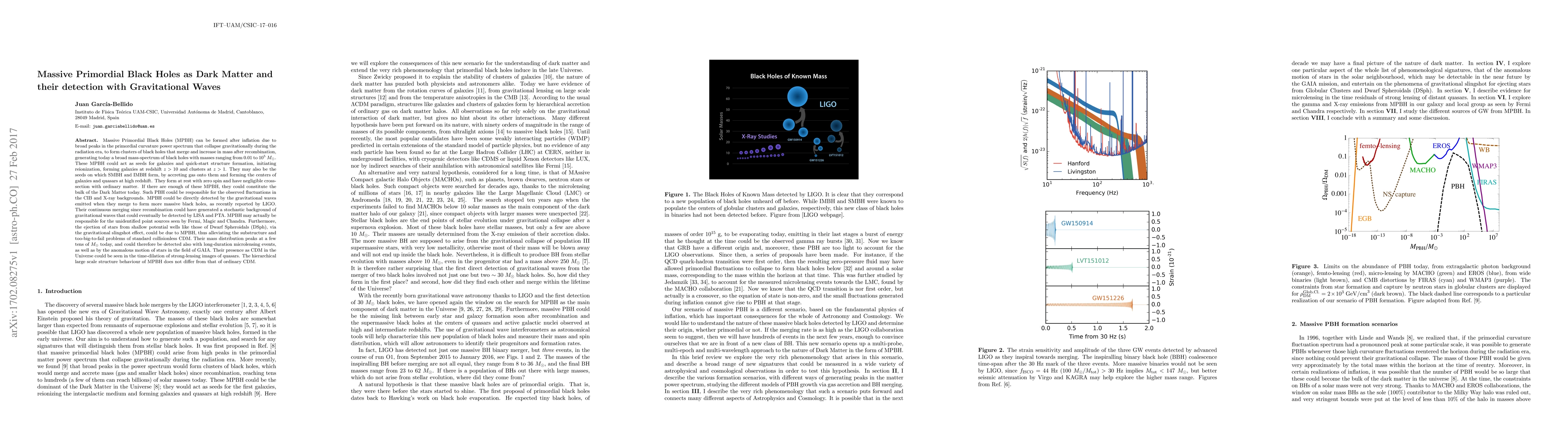 This paper explores the hypothesis that Massive Primordial Black Holes (MPBH) could constitute a significant portion of Dark Matter, formed after inflation and detectable through gravitational waves from their mergers. It suggests that MPBH could also resolve several cosmological issues, including the substructure problem, and proposes various detection methods including gravitational wave observatories and microlensing.