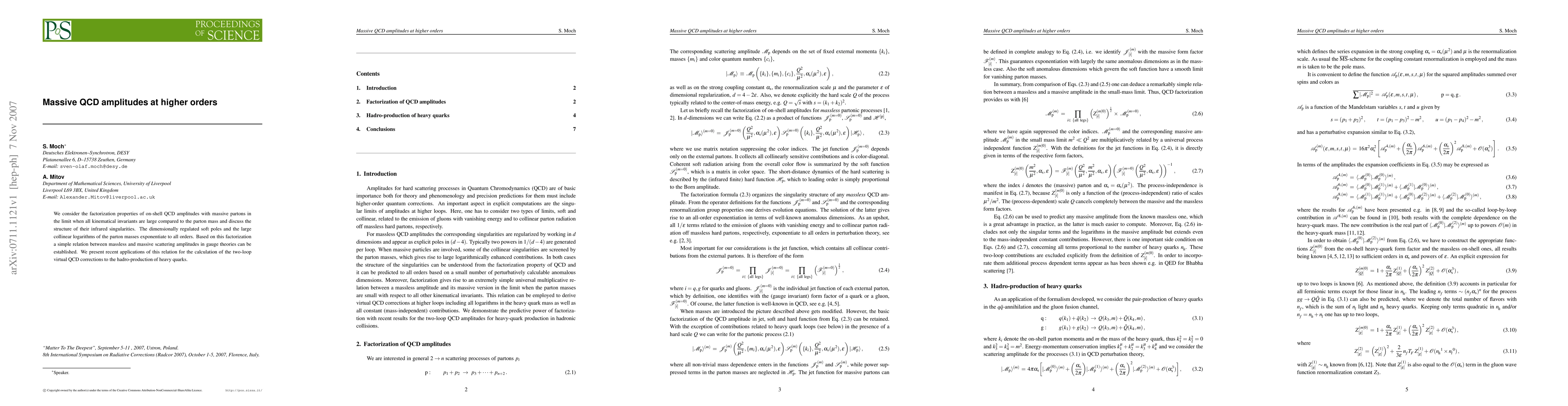 This paper explores the factorization properties of massive QCD amplitudes where all kinematic invariants are much larger than parton masses, focusing on their infrared singularities. It establishes a simple relation between massless and massive scattering amplitudes, applying this to calculate two-loop virtual QCD corrections for heavy quark hadro-production.