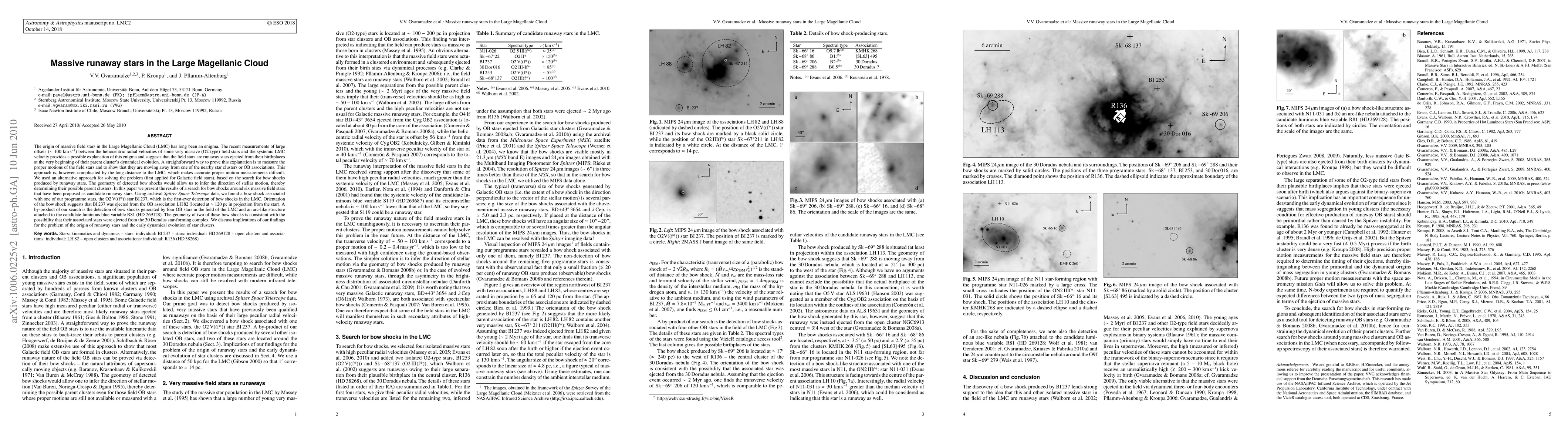 This paper investigates the origins of massive runaway stars in the Large Magellanic Cloud (LMC) by searching for bow shocks, which indicate stellar motion. The study found a bow shock around the O2 V((f*)) star BI 237, suggesting it was ejected from the OB association LH 82, providing evidence for the runaway star hypothesis.