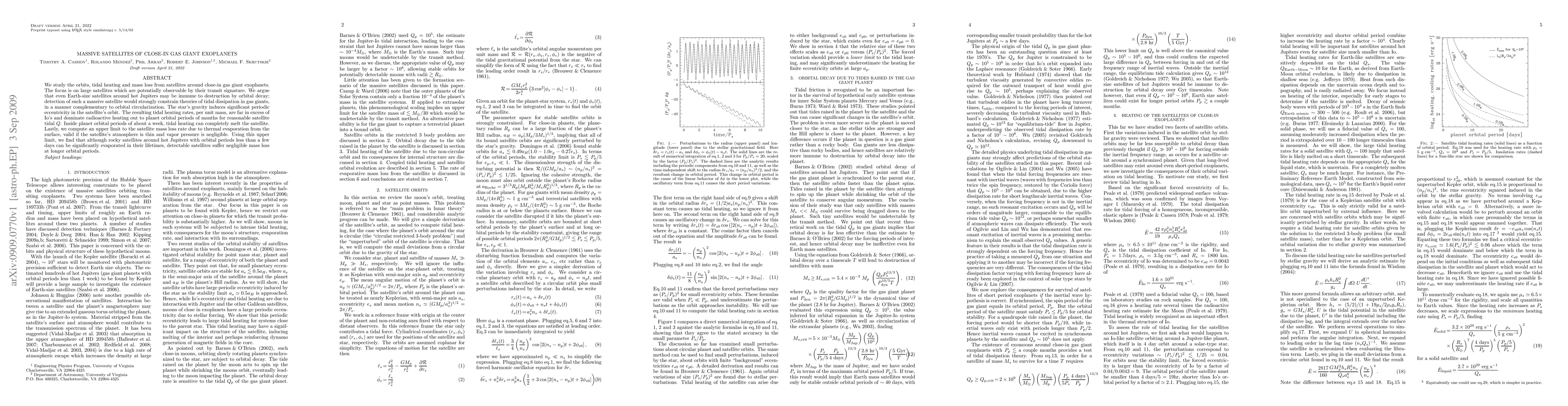 This paper investigates the orbits, tidal heating, and mass loss of large satellites around close-in gas giant exoplanets, finding that even Earth-sized satellites may survive orbital decay. It concludes that tidal heating can melt satellites within a week of orbital period, but those with longer periods experience negligible mass loss.