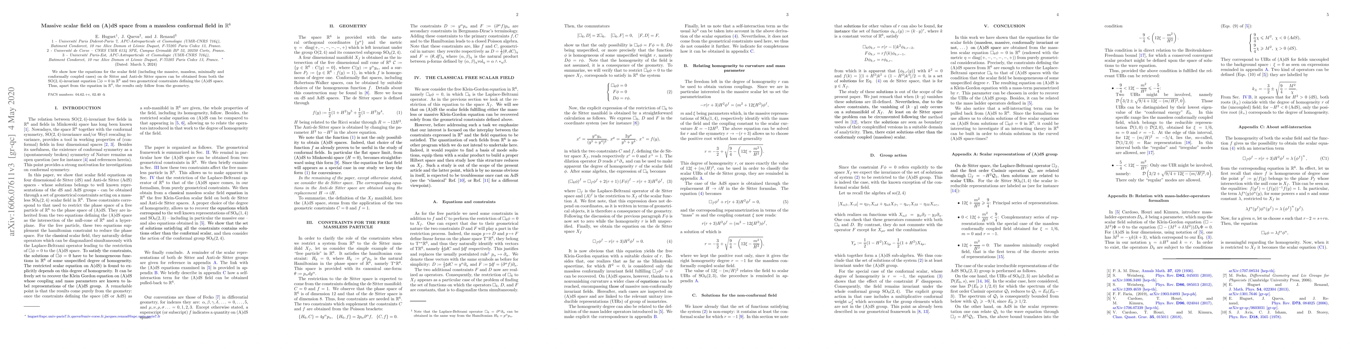 We show how the equations for the scalar field (including the massive, massless, minimally and conformally coupled cases) on de Sitter and Anti-de Sitter spaces can be obtained from both the SO$(2,4)$-invariant equation $\square \phi = 0$ in $\mathbb{R}^6$ and two geometrical constraints defining the (A)dS space. Apart from the equation in $\mathbb{R}^6$, the results only follow from the geometry.