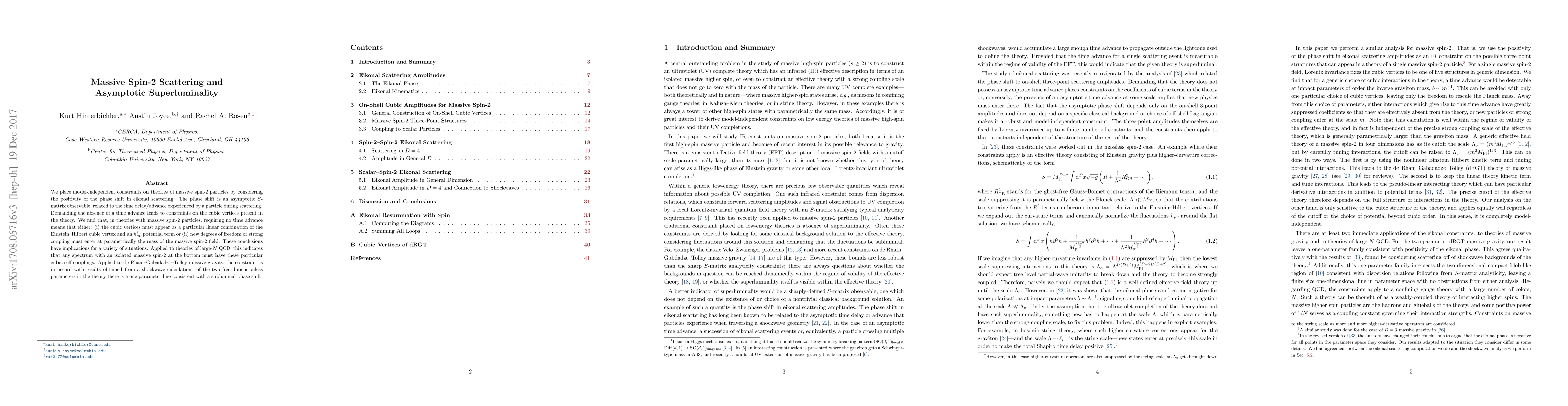 We place model-independent constraints on theories of massive spin-2 particles by considering the positivity of the phase shift in eikonal scattering. The phase shift is an asymptotic $S$-matrix observable, related to the time delay/advance experienced by a particle during scattering. Demanding the absence of a time advance leads to constraints on the cubic vertices present in the theory. We find that, in theories with massive spin-2 particles, requiring no time advance means that either: (i) the cubic vertices must appear as a particular linear combination of the Einstein-Hilbert cubic vertex and an $h_{\mu\nu}^3$ potential term or (ii) new degrees of freedom or strong coupling must enter at parametrically the mass of the massive spin-2 field. These conclusions have implications for a variety of situations. Applied to theories of large-$N$ QCD, this indicates that any spectrum with an isolated massive spin-2 at the bottom must have these particular cubic self-couplings. Applied to de Rham-Gabadadze-Tolley massive gravity, the constraint is in accord with and generalizes previous results obtained from a shockwave calculation: of the two free dimensionless parameters in the theory there is a one parameter line consistent with a subluminal phase shift.