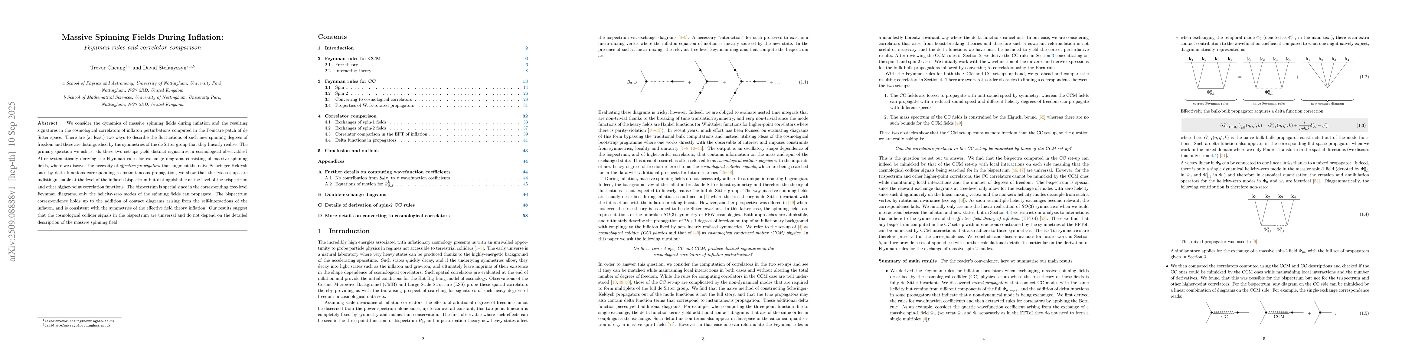 We consider the dynamics of massive spinning fields during inflation and the resulting signatures in the cosmological correlators of inflaton perturbations computed in the Poincar\'{e} patch of de Sitter space. There are (at least) two ways to describe the fluctuations of such new spinning degrees of freedom and these are distinguished by the symmetries of the de Sitter group that they linearly realise. The primary question we ask is: do these two set-ups yield distinct signatures in cosmological observables? After systematically deriving the Feynman rules for exchange diagrams consisting of massive spinning fields, where we discover the necessity of \textit{effective propagators} that augment the naive Schwinger-Keldysh ones by delta functions corresponding to instantaneous propagation, we show that the two set-ups are indistinguishable at the level of the inflaton bispectrum but distinguishable at the level of the trispectrum and other higher-point correlation functions. The bispectrum is special since in the corresponding tree-level Feynman diagrams, only the helicity-zero modes of the spinning fields can propagate. The bispectrum correspondence holds up to the addition of contact diagrams arising from the self-interactions of the inflaton, and is consistent with the symmetries of the effective field theory inflation. Our results suggest that the cosmological collider signals in the bispectrum are universal and do not depend on the detailed description of the massive spinning field.