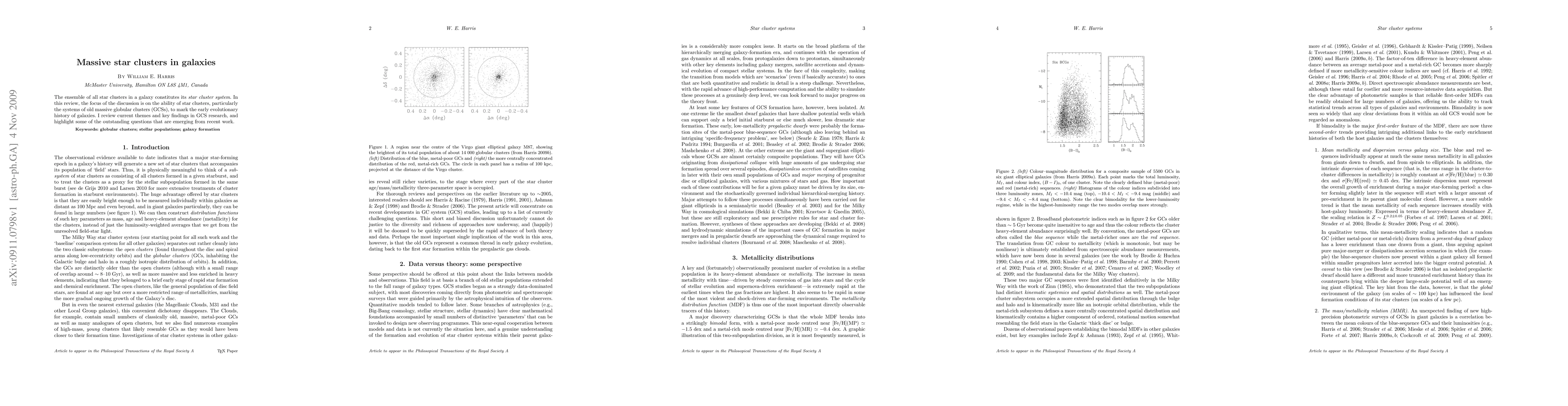 The ensemble of all star clusters in a galaxy constitutes its star cluster system. In this review, the focus of the discussion is on the ability of star clusters, particularly the systems of old massive globular clusters (GCSs), to mark the early evolutionary history of galaxies. I review current themes and key findings in GCS research, and highlight some of the outstanding questions that are emerging from recent work.