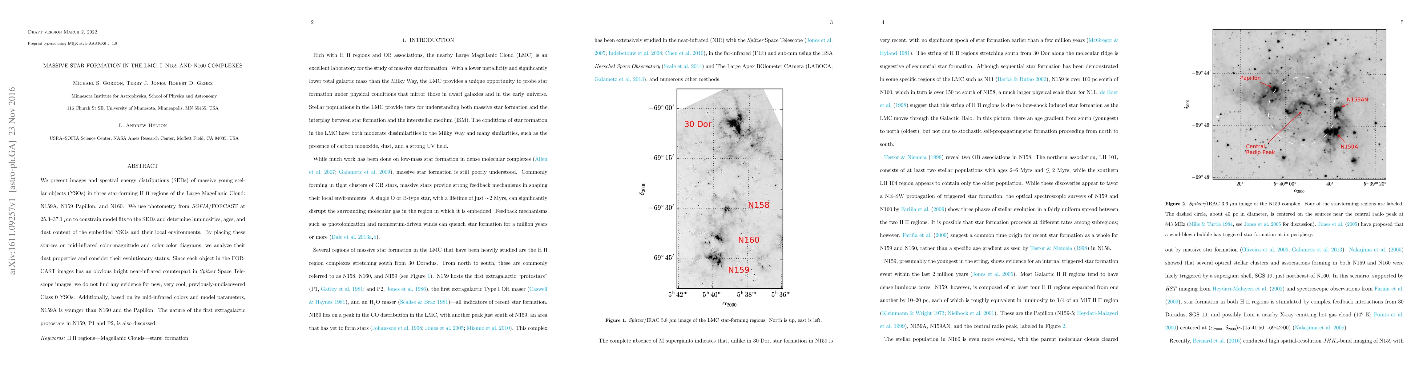 This paper investigates massive young stellar objects (YSOs) in three star-forming H II regions of the Large Magellanic Cloud using SOFIA/FORCAST data. The study finds no evidence for new Class 0 YSOs, and determines that N159A is younger than N160 and the Papillon based on mid-infrared colors and model parameters.