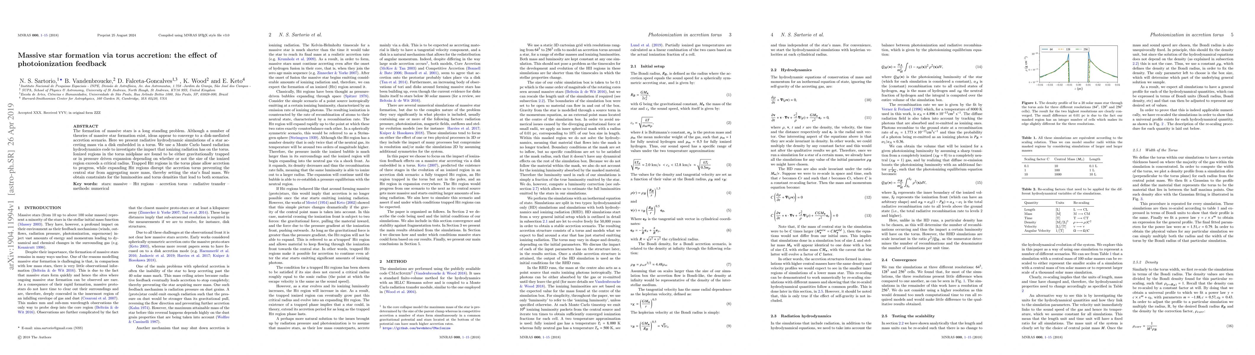 This paper investigates the formation of massive stars through torus accretion, using radiative hydrodynamic simulations to explore the effects of photoionization feedback. The study finds that ionized regions in the torus either trap or expand based on their size, influencing whether accretion continues or is halted, thus determining the star's final mass.