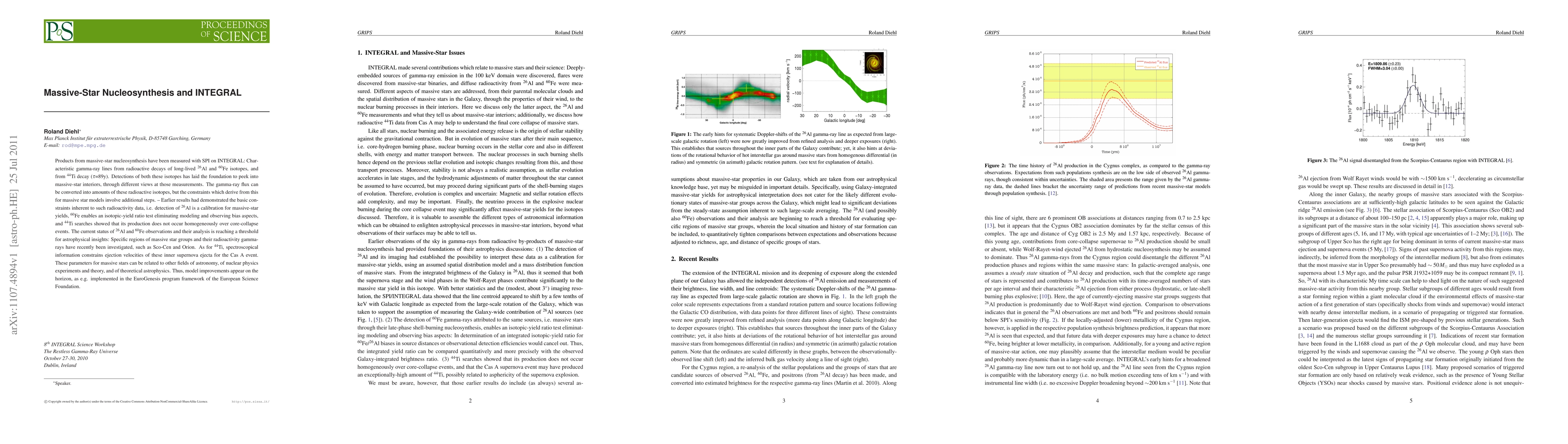 This paper discusses the detection of gamma-ray lines from radioactive isotopes 26Al, 60Fe, and 44Ti via the SPI instrument on INTEGRAL, providing insights into massive-star nucleosynthesis and interior processes. These findings refine models of massive star yields and supernova ejecta dynamics, with implications for nuclear physics and astrophysics.