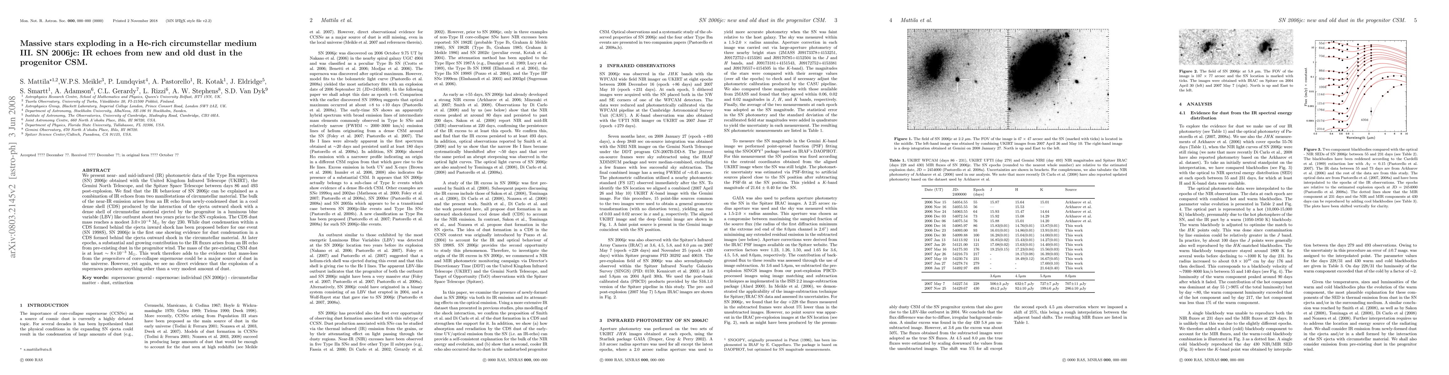 This paper analyzes the near- and mid-infrared data of supernova SN 2006jc, revealing that its IR behavior is due to echoes from both newly-condensed and pre-existing dust in the progenitor's circumstellar medium. The study highlights the formation of a cool dense shell behind the outward shock, contributing to the IR emission.