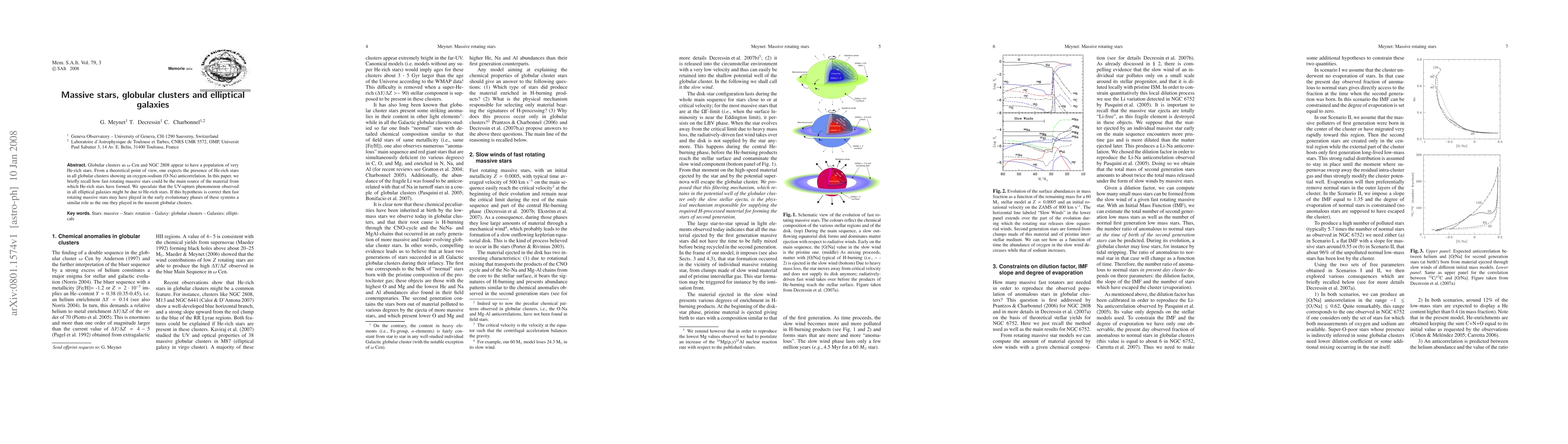 Globular clusters as $\omega$ Cen and NGC 2808 appear to have a population of very He-rich stars. From a theoretical point of view, one expects the presence of He-rich stars in all globular clusters showing an oxygen-sodium (O-Na) anticorrelation. In this paper, we briefly recall how fast rotating massive stars could be the main source of the material from which He-rich stars have formed. We speculate that the UV-upturn phenomenon observed in all elliptical galaxies might be due to He-rich stars. If this hypothesis is correct then fast rotating massive stars may have played in the early evolutionary phases of these systems a similar role as the one they played in the nascent globular clusters.