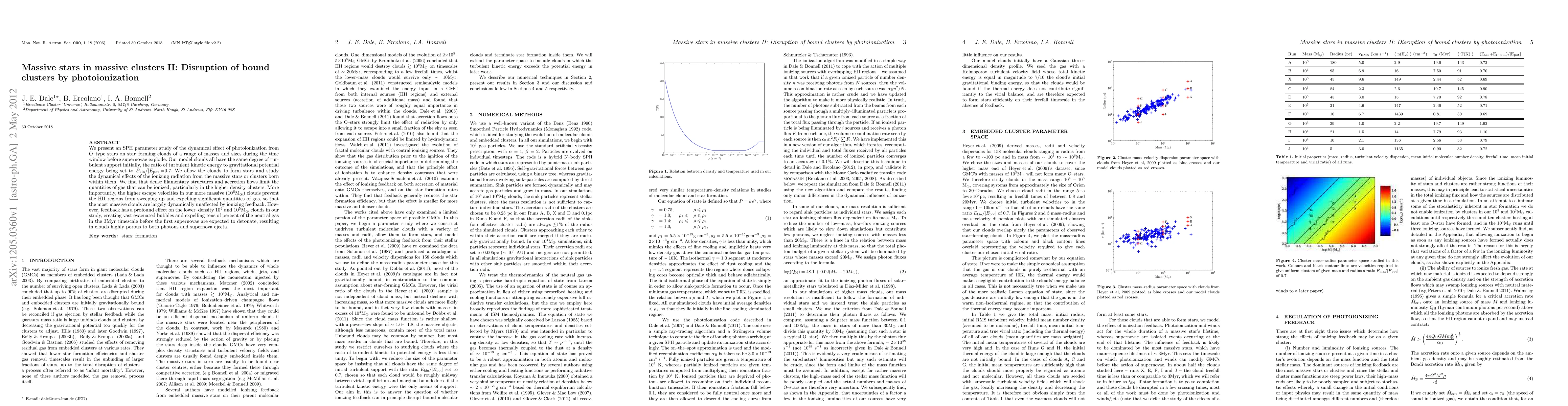 We present an SPH parameter study of the dynamical effect of photoionization from O--type stars on star--forming clouds of a range of masses and sizes during the time window before supernovae explode. Our model clouds all have the same degree of turbulent support initially, the ratio of turbulent kinetic energy to gravitational potential energy being set to $E_{\rm kin}/|E_{\rm pot}|$=0.7. We allow the clouds to form stars and study the dynamical effects of the ionizing radiation from the massive stars or clusters born within them. We find that dense filamentary structures and accretion flows limit the quantities of gas that can be ionized, particularly in the higher density clusters. More importantly, the higher escape velocities in our more massive (10$^{6}$M$_{\odot}$) clouds prevent the HII regions from sweeping up and expelling significant quantities of gas, so that the most massive clouds are largely dynamically unaffected by ionizing feedback. However, feedback has a profound effect on the lower--density 10$^{4}$ and 10$^{5}$M$_{\odot}$ clouds in our study, creating vast evacuated bubbles and expelling tens of percent of the neutral gas in the 3Myr timescale before the first supernovae are expected to detonate, resulting in clouds highly porous to both photons and supernova ejecta.
