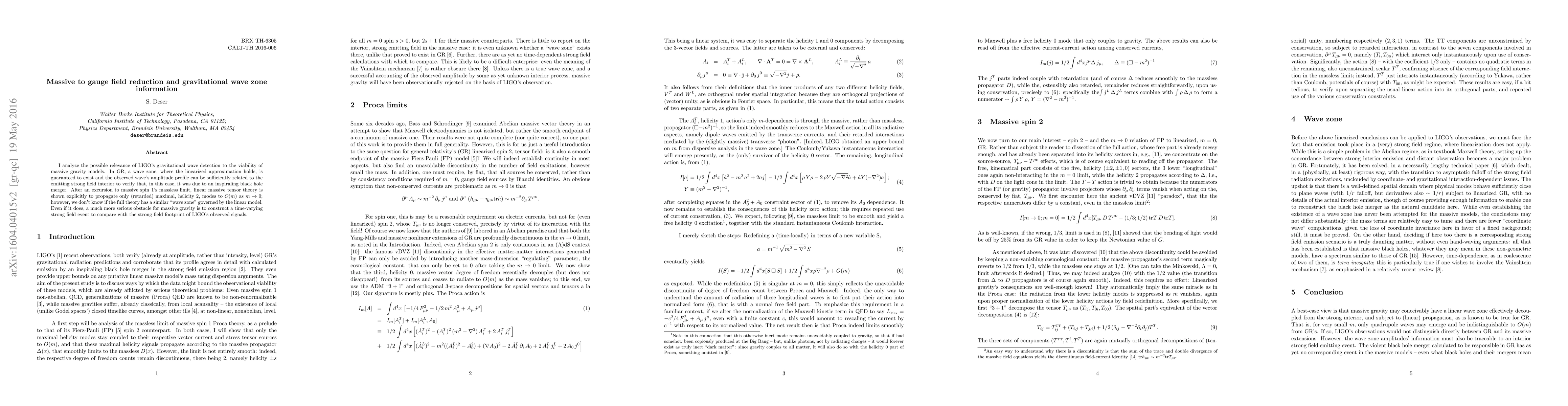 We show explicitly that massive, Abelian, vector, just like (properly defined) massive tensor, fields limit smoothly to their massless, gauge, versions: they emit only maximal helicity radiation and mediate Coulomb and (special relativistic) Newtonian, forces between their (conserved) sources. Our main motivation, though, is to show that the recent gravitational wave detection probably cannot directly rule out very long-range gravity: Even though the waves were emitted in a strong field regime, their being detected in the weak field wave zone means the above equivalences apply. There remains the, not unlikely, possibility that no strong field generation of radiation in massive models can reproduce the observed ring-down patterns. Separately, the smooth linear limiting behaviors show that the discontinuity lies not in the mass alone, but rather in Abelian versus non-Abelian, Yang-Mills and General Relativity, regimes, whose respective massive versions are known to be non-physical.