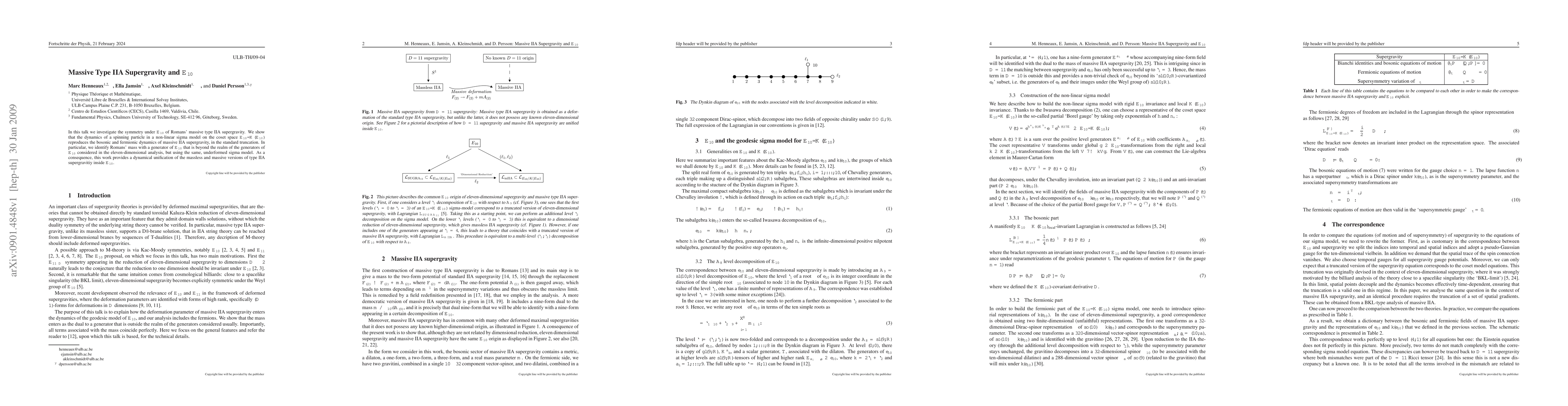 This research demonstrates that Romans' massive type IIA supergravity exhibits symmetry under E10, revealing a dynamical unification of its massless and massive versions through a spinning particle model on the E10/K(E10) coset space, identifying Romans' mass with an E10 generator.