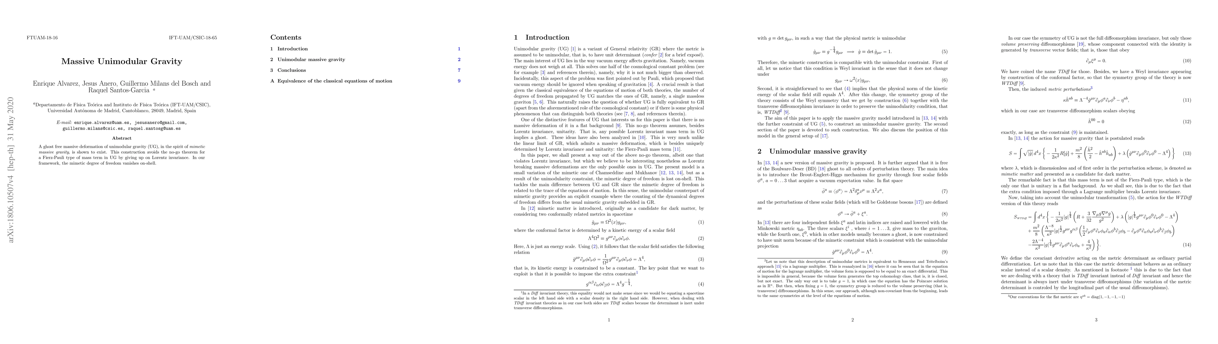 The paper presents a novel massive deformation of unimodular gravity by employing volume-preserving diffeomorphisms and Weyl invariance, ensuring ghost-freedom and eliminating the mimetic degree of freedom on-shell.