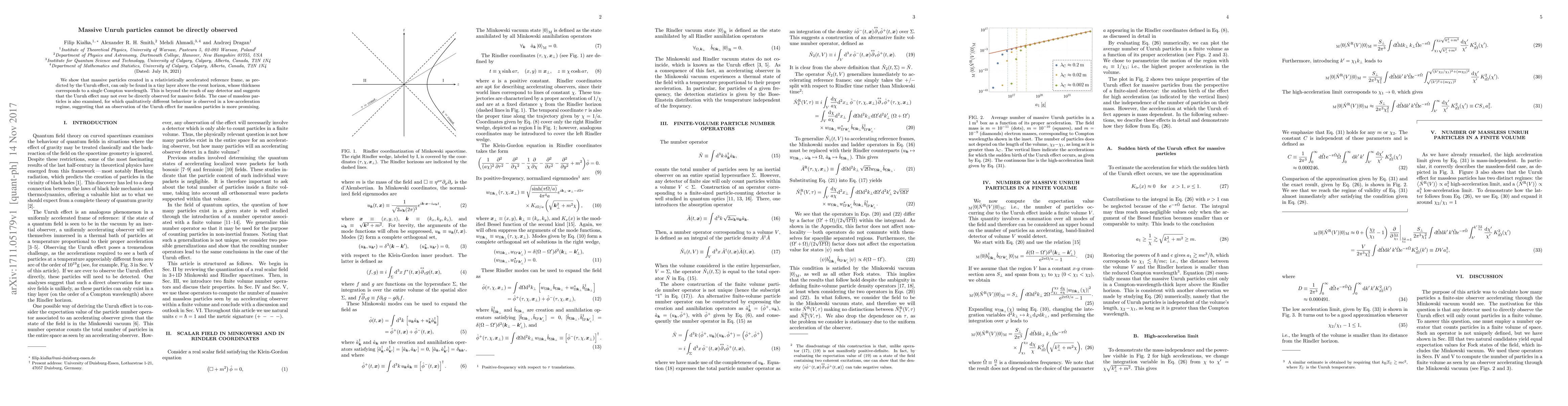 The Unruh effect predicts massive particles in an accelerated frame, but they are confined to a region beyond any detectable thickness, suggesting direct observation is impossible. For massless particles, a low-acceleration regime shows different behavior, hinting at a more feasible observation of the Unruh effect.