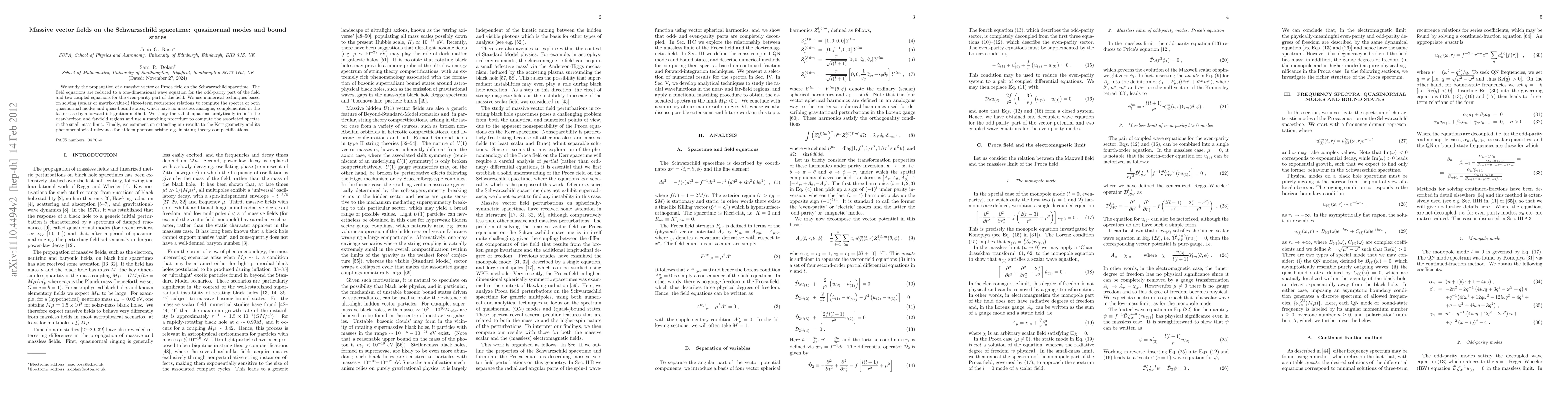 This paper studies the propagation of a massive vector field on Schwarzschild spacetime, finding new quasi-normal modes and bound states with no massless analogue, with implications for hidden photons in string theory compactifications.
