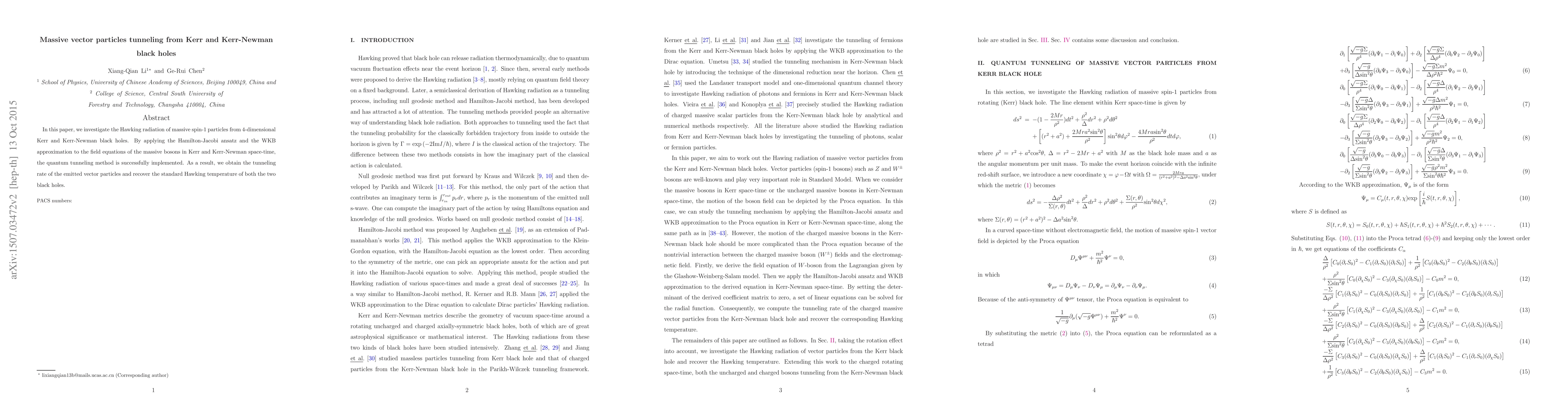 In this paper, we investigate the Hawking radiation of massive spin-1 particles from 4-dimensional Kerr and Kerr-Newman black holes. By applying the Hamilton-Jacobi ansatz and the WKB approximation to the field equations of the massive bosons in Kerr and Kerr-Newman space-time, the quantum tunneling method is successfully implemented. As a result, we obtain the tunneling rate of the emitted vector particles and recover the standard Hawking temperature of both the two black holes.