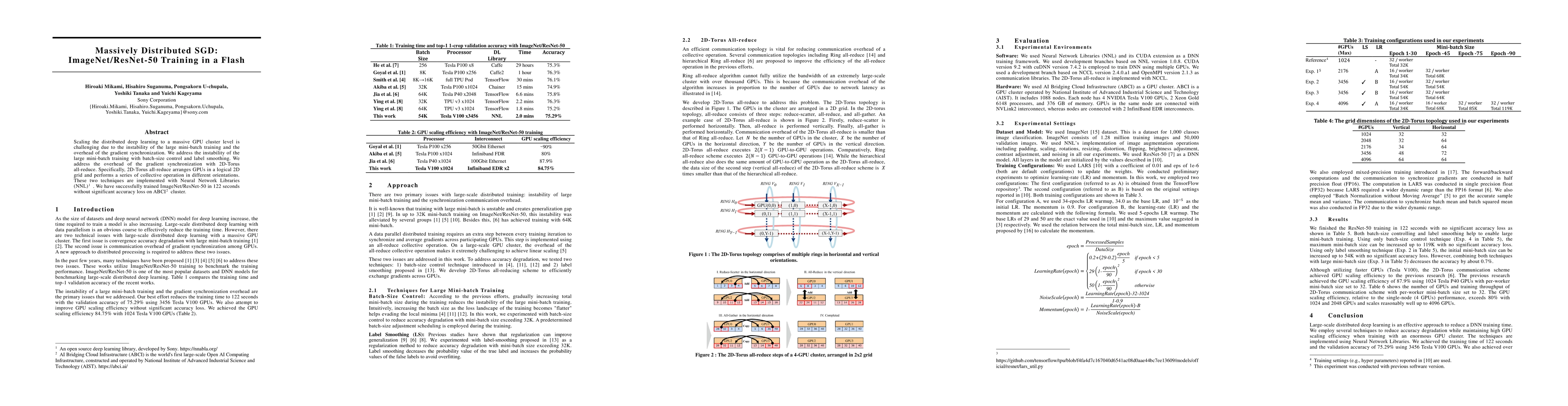 Researchers trained ImageNet/ResNet-50 on a massive GPU cluster using batch-size control, label smoothing, 2D-Torus all-reduce, and Neural Network Libraries to achieve near-instant training in just 122 seconds.