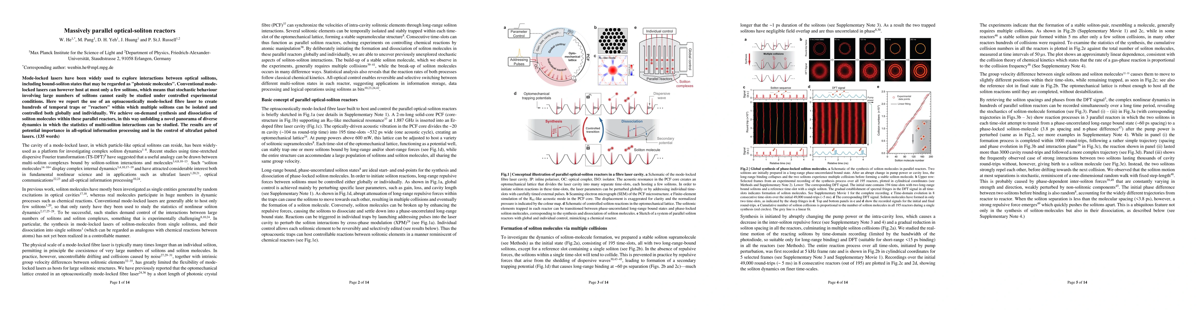 This paper reports the development of an optoacoustically mode-locked fibre laser capable of creating hundreds of optical-soliton reactors, enabling controlled study of large-scale soliton interactions. This technology allows for on-demand synthesis and dissociation of soliton molecules, offering potential advancements in all-optical information processing and ultrafast laser control.