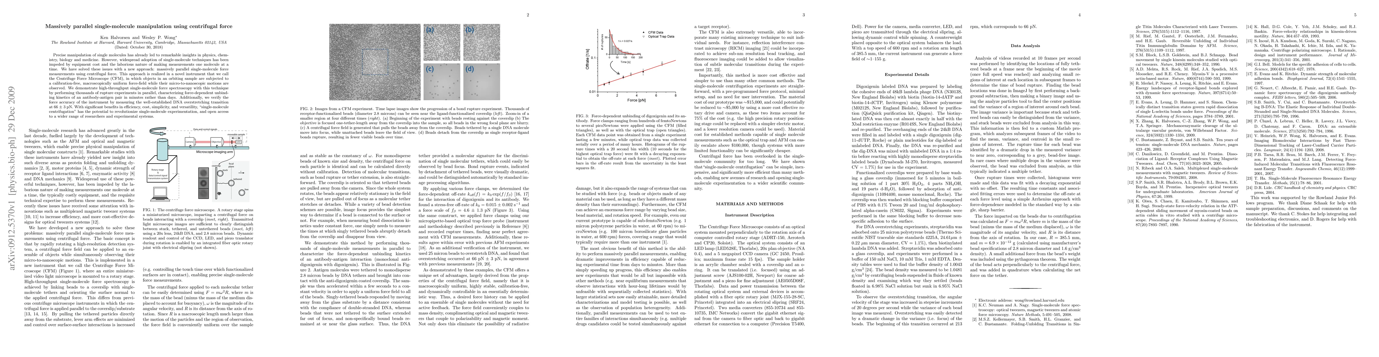 This paper introduces a novel Centrifuge Force Microscope (CFM) that enables massively parallel single-molecule manipulation using centrifugal force, significantly enhancing the efficiency and reducing the cost of single-molecule experiments. The CFM allows high-throughput force spectroscopy, enabling rapid characterization of molecular interactions and demonstrating potential to democratize single-molecule research.