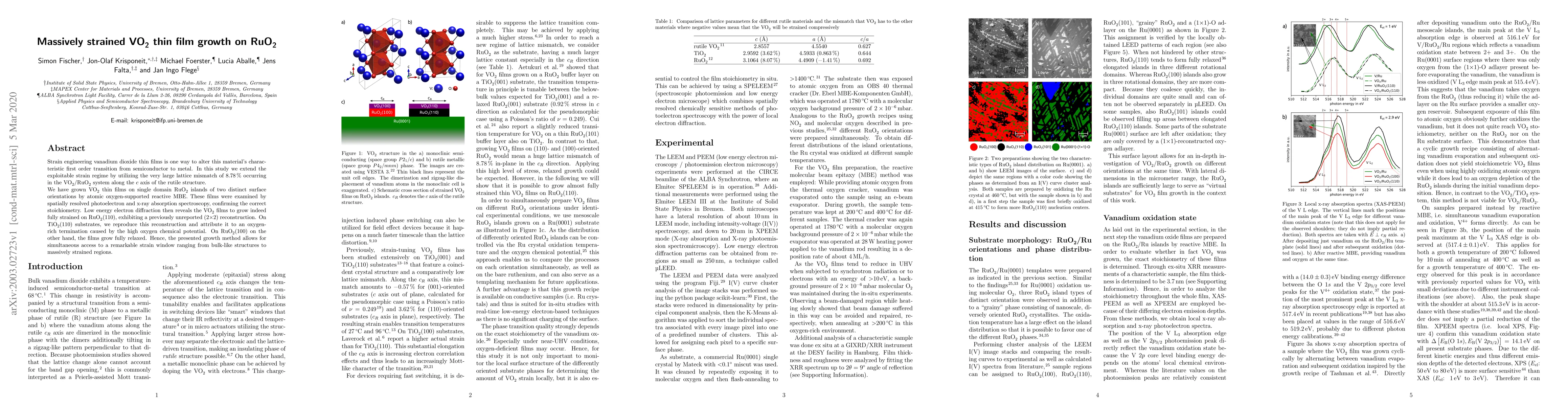 This study explores the growth of VO$_2$ thin films on RuO$_2$ substrates to manipulate the material's transition from semiconductor to metal through strain engineering. The films exhibit a ($2\times2$) reconstruction on RuO$_2$(110), while on RuO$_2$(100), they remain relaxed, demonstrating a wide strain regime accessible via this method.