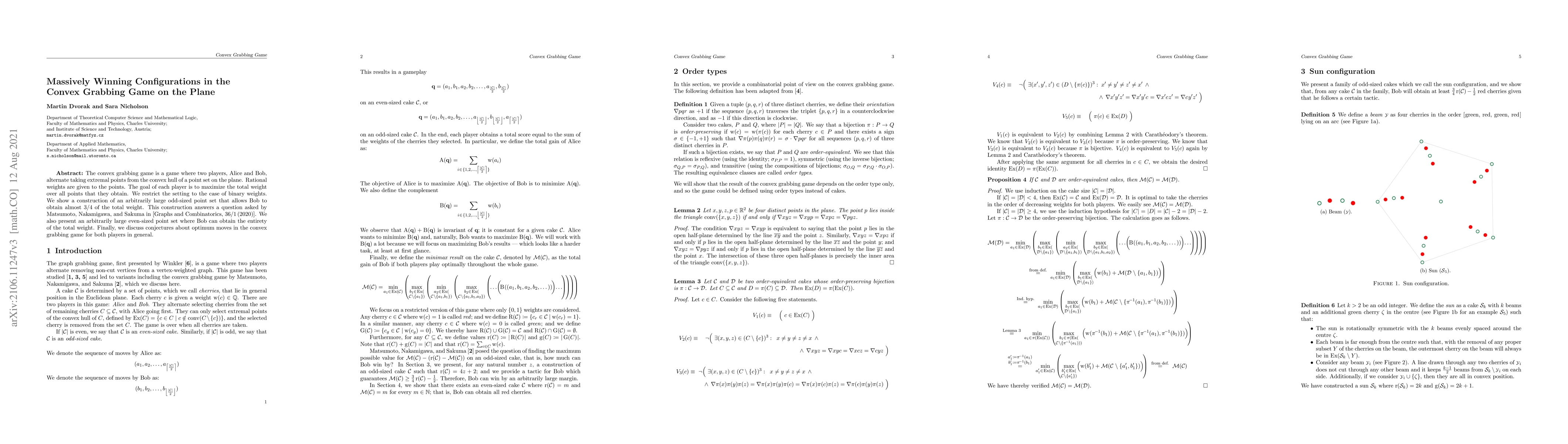 The convex grabbing game is a game where two players, Alice and Bob, alternate taking extremal points from the convex hull of a point set on the plane. Rational weights are given to the points. The goal of each player is to maximize the total weight over all points that they obtain. We restrict the setting to the case of binary weights. We show a construction of an arbitrarily large odd-sized point set that allows Bob to obtain almost 3/4 of the total weight. This construction answers a question asked by Matsumoto, Nakamigawa, and Sakuma in [Graphs and Combinatorics, 36/1 (2020)]. We also present an arbitrarily large even-sized point set where Bob can obtain the entirety of the total weight. Finally, we discuss conjectures about optimum moves in the convex grabbing game for both players in general.