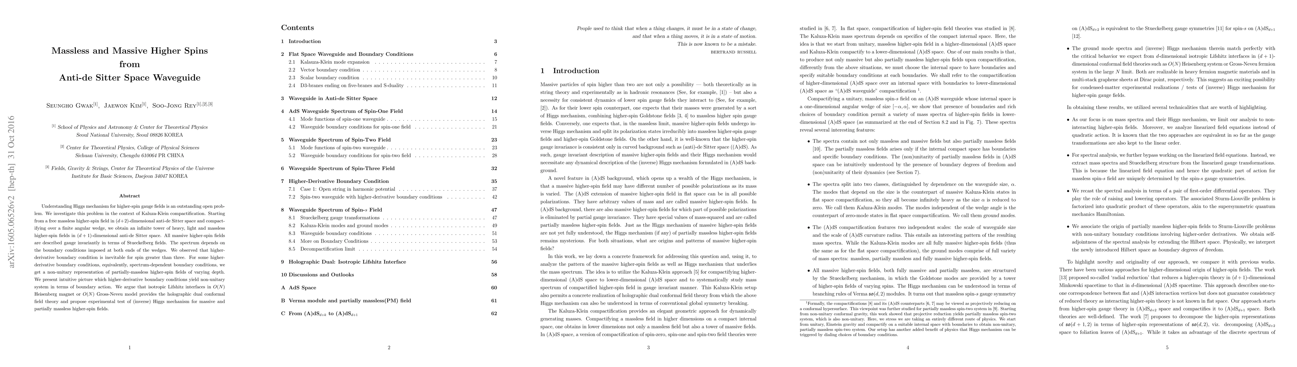Higgs mechanism to massive higher-spin gauge fields is an outstanding open problem. We investigate this issue in the context of Kaluza-Klein compactification. Starting from a free massless higher-spin field in $(d+2)$-dimensional anti-de Sitter space and compactifying over a finite angular wedge, we obtain an infinite tower of heavy, light and massless higher-spin fields in $(d+1)$-dimensional anti-de Sitter space. All massive higher-spin fields are described gauge invariantly in terms of St\"ueckelberg fields. The spectrum depends on the boundary conditions imposed at both ends of the wedges. We obseved that higher-derivative boundary condition is inevitable for spin greater than three. For some higher-derivative boundary conditions, equivalently, spectrum-dependent boundary conditions, we get a non-unitary representation of partially-massless higher-spin fields of varying depth. We present intuitive picture which higher-derivative boundary conditions yield non-unitary system in terms of boundary action. We argue that isotropic Lifshitz interfaces in $O(N)$ Heisenberg magnet or $O(N)$ Gross-Neveu model provides the holographic dual conformal field theory and propose experimental test of (inverse) Higgs mechanism for massive and partially massless higher-spin fields.