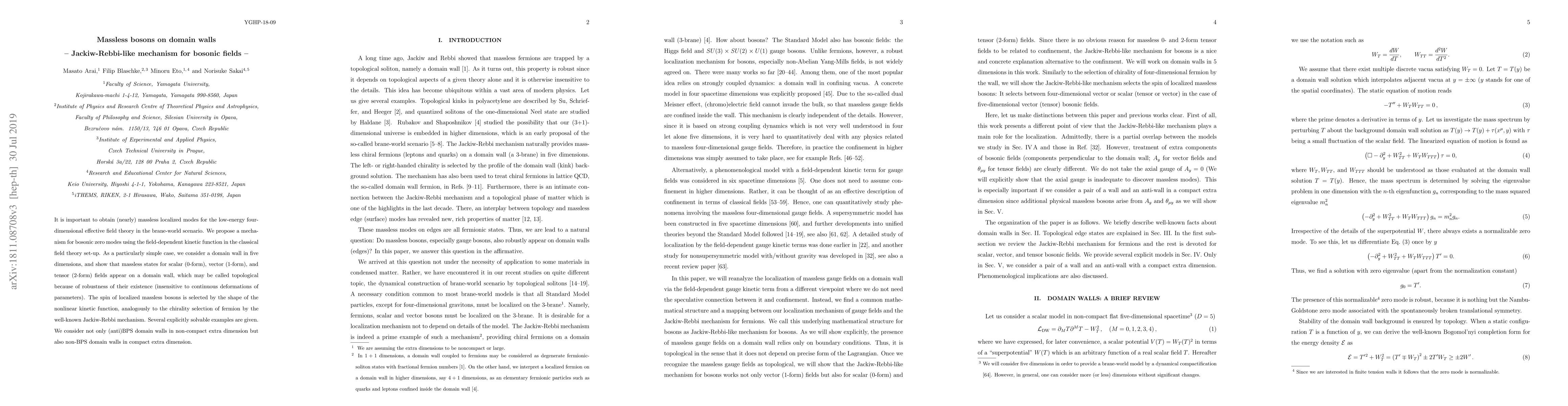 This paper proposes a mechanism for generating nearly massless localized modes for bosonic fields in a brane-world scenario using field-dependent kinetic functions. It demonstrates the emergence of massless scalar, vector, and tensor fields on a five-dimensional domain wall, analogous to the Jackiw-Rebbi mechanism for fermions, and provides examples in both non-compact and compact extra dimensions.