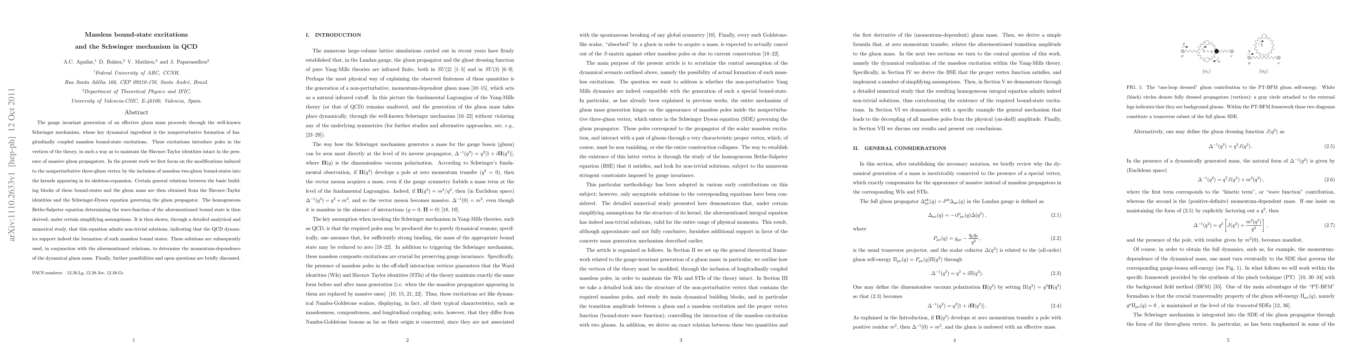 This paper investigates the Schwinger mechanism in QCD, focusing on the generation of an effective gluon mass through nonperturbative massless bound-state excitations. It demonstrates the formation of such bound states and derives their wave-function, showing that they support the dynamical gluon mass generation while maintaining Slavnov-Taylor identities.