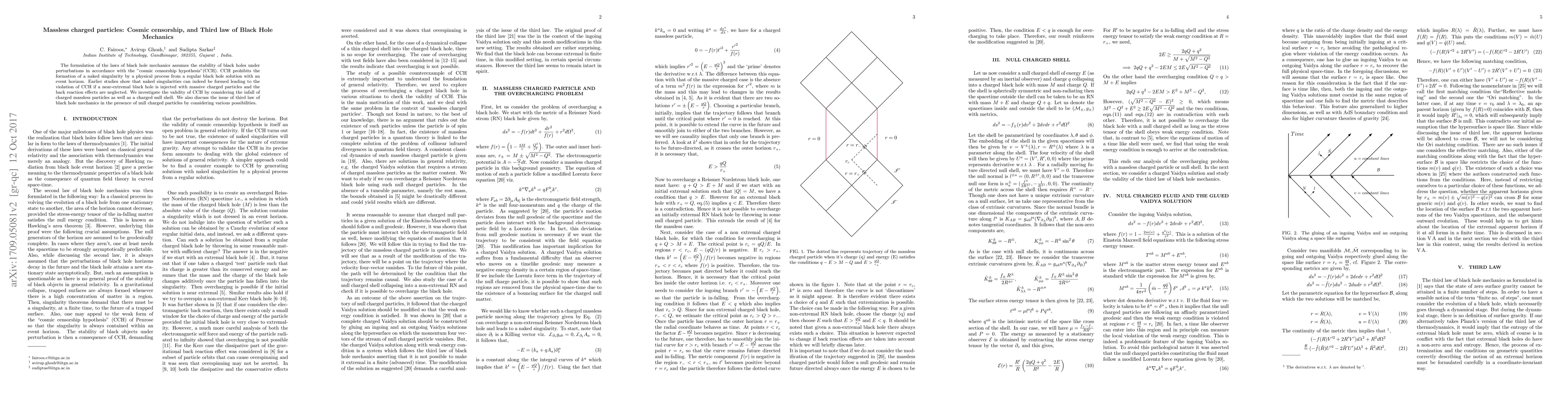 Researchers investigate whether massless charged particles can form naked singularities in black holes, potentially violating cosmic censorship hypothesis, and explore implications for the third law of black hole mechanics.