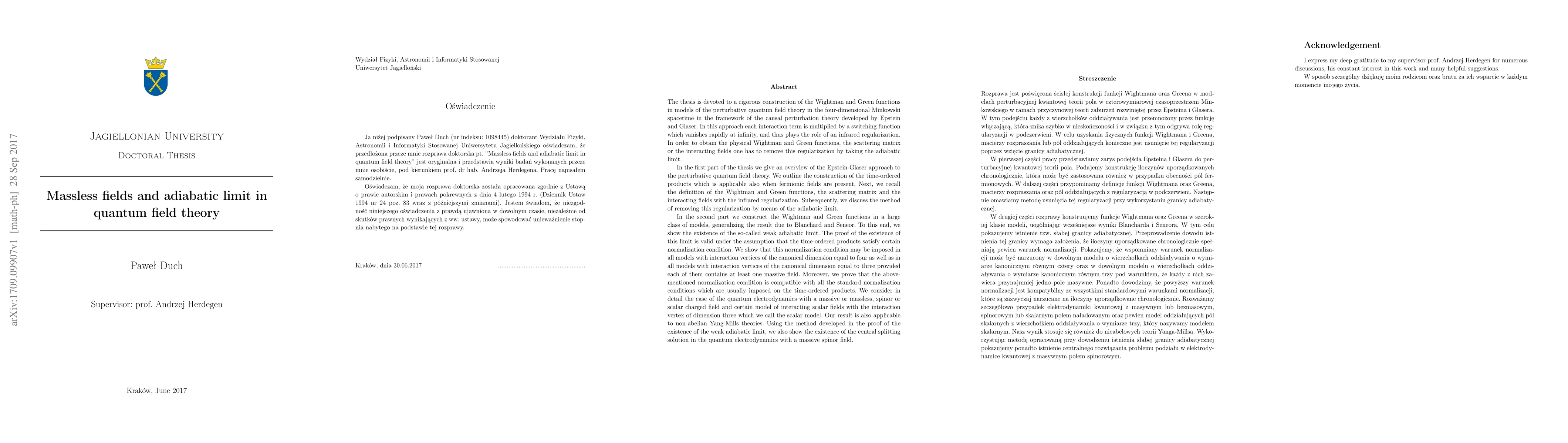 The thesis is devoted to a rigorous construction of the Wightman and Green functions in models of the perturbative quantum field theory in the four-dimensional Minkowski spacetime in the framework of the causal perturbation theory developed by Epstein and Glaser. In the first part of the thesis we give an overview of the Epstein-Glaser approach to the perturbative quantum field theory. In the second part we construct the Wightman and Green functions in a large class of models, generalizing the result due to Blanchard and Seneor. To this end, we show the existence of the so-called weak adiabatic limit. The proof of the existence of this limit is valid under the assumption that the time-ordered products satisfy certain normalization condition. We show that this normalization condition may be imposed in all models with interaction vertices of the canonical dimension equal to four as well as in all models with interaction vertices of the canonical dimension equal to three provided each of them contains at least one massive field. Moreover, we prove that the above-mentioned normalization condition is compatible with all the standard normalization conditions which are usually imposed on the time-ordered products. We consider in detail the case of the quantum electrodynamics with a massive or massless, spinor or scalar charged field and certain model of interacting scalar fields with the interaction vertex of dimension three which we call the scalar model. Our result is also applicable to non-abelian Yang-Mills theories. Using the method developed in the proof of the existence of the weak adiabatic limit, we also show the existence of the central splitting solution in the quantum electrodynamics with a massive spinor field.