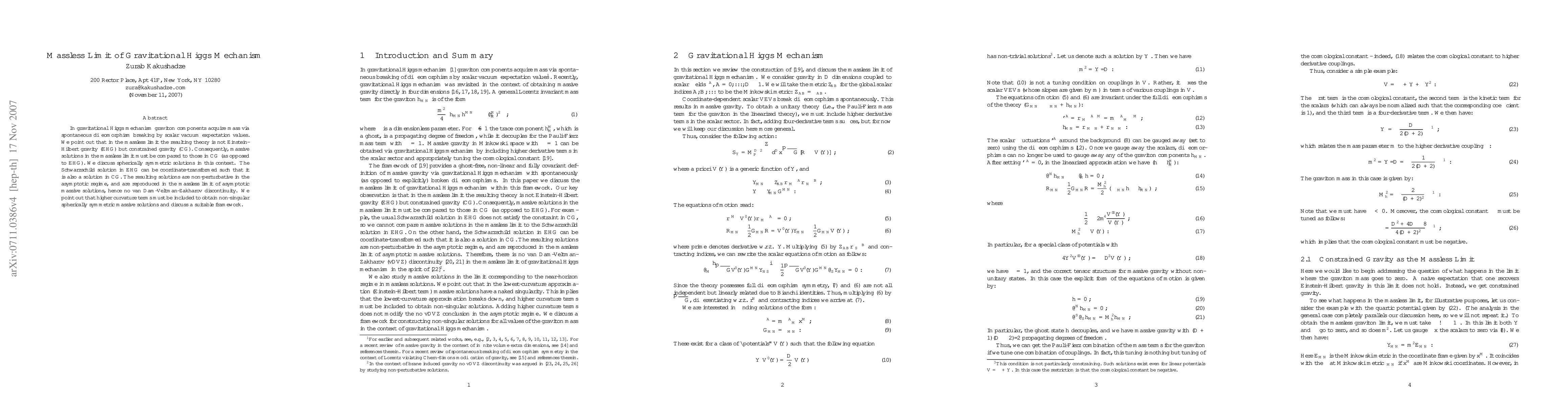 In gravitational Higgs mechanism graviton components acquire mass via spontaneous diffeomorphism breaking by scalar vacuum expectation values. We point out that in the massless limit the resulting theory is not Einstein-Hilbert gravity (EHG) but constrained gravity (CG). Consequently, massive solutions in the massless limit must be compared to those in CG (as opposed to EHG). We discuss spherically symmetric solutions in this context. The Schwarzschild solution in EHG can be coordinate-transformed such that it is also a solution in CG. The resulting solutions are non-perturbative in the asymptotic regime, and are reproduced in the massless limit of asymptotic massive solutions, hence no van Dam-Veltman-Zakharov discontinuity. We point out that higher curvature terms must be included to obtain non-singular spherically symmetric massive solutions and discuss a suitable framework.