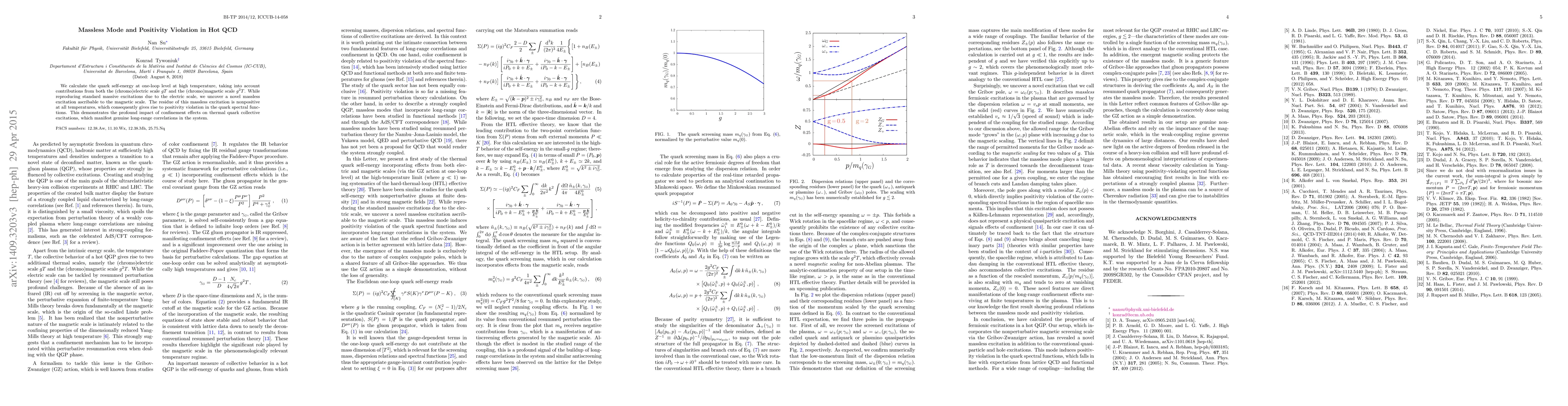 We calculate the quark self-energy at one-loop level at high temperature, taking into account contributions from both the (chromo)electric scale $gT$ and the (chromo)magnetic scale $g^2T$. While reproducing standard massive excitations due to the electric scale, we uncover a novel massless excitation ascribable to the magnetic scale. The residue of this massless excitation is nonpositive at all temperatures, which consequently gives rise to positivity violation in the quark spectral functions. This demonstrates the profound impact of confinement effects on thermal quark collective excitations, which manifest genuine long-range correlations in the system.