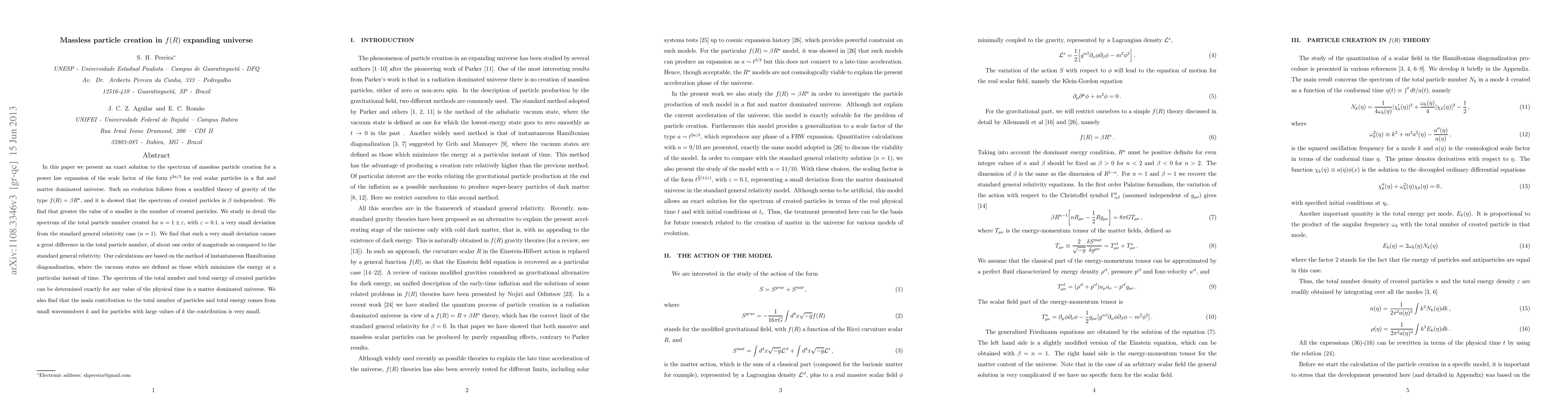 This paper presents a solution to massless particle creation in a universe with a power law expansion, showing that the spectrum of created particles is independent of the model's parameter beta and dependent on the value of n, with smaller n values leading to fewer particles.