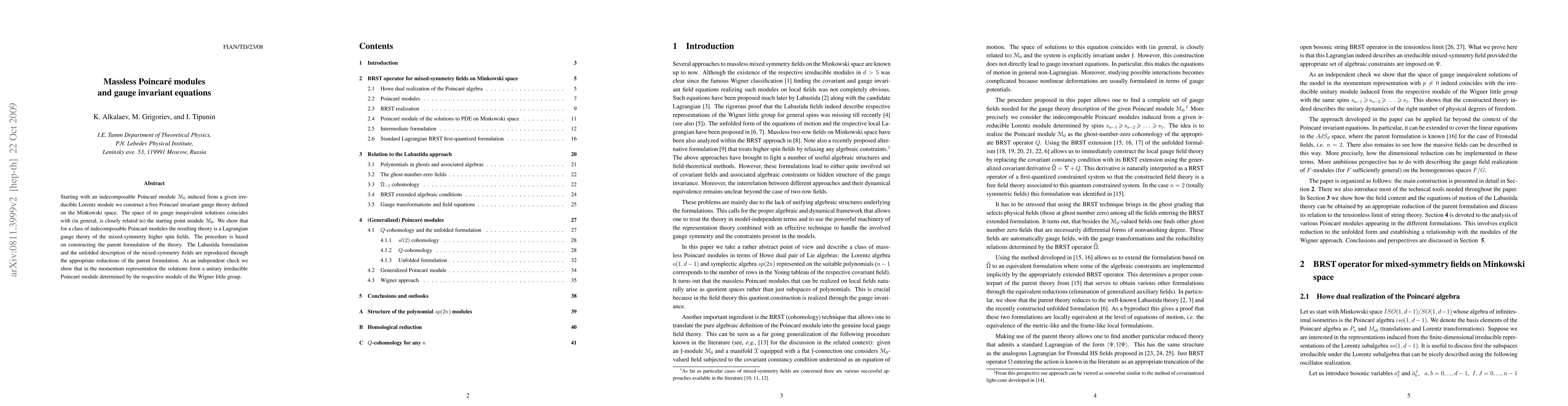 Starting with an indecomposable Poincare module M_0 induced from a given irreducible Lorentz module we construct a free Poincare invariant gauge theory defined on the Minkowski space. The space of its gauge inequivalent solutions coincides with (in general, is closely related to) the starting point module M_0. We show that for a class of indecomposable Poincare modules the resulting theory is a Lagrangian gauge theory of the mixed-symmetry higher spin fields. The procedure is based on constructing the parent formulation of the theory. The Labastida formulation and the unfolded description of the mixed symmetry fields are reproduced through the appropriate reductions of the parent formulation. As an independent check we show that in the momentum representation the solutions form a unitary irreducible Poincare module determined by the respective module of the Wigner little group.