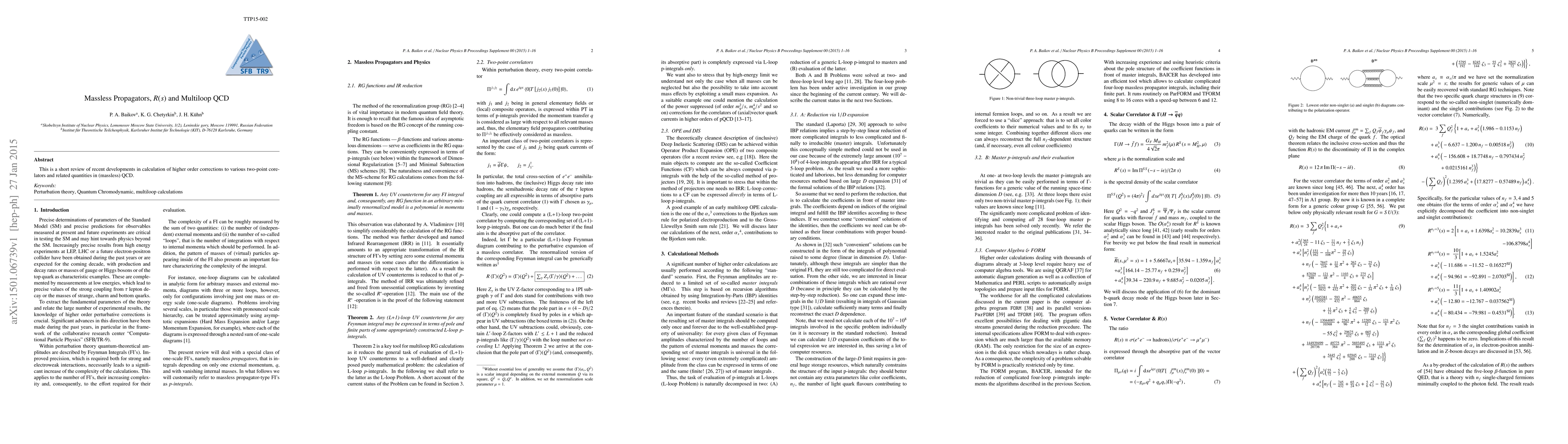 Summary: This paper reviews recent advancements in calculating higher-order corrections for two-point correlators in massless QCD, focusing on the $R(s)$ function and multiloop QCD processes. The study highlights significant progress in understanding the behavior of propagators in these contexts.