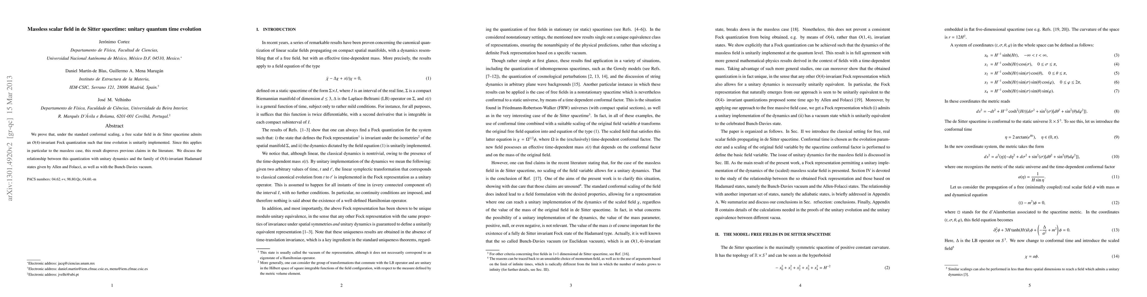 This paper demonstrates that a massless scalar field in de Sitter spacetime can be quantized in a way that preserves unitarity for time evolution, refuting earlier claims. It also explores the connection between this unitary quantization and various O(4)-invariant Hadamard states.