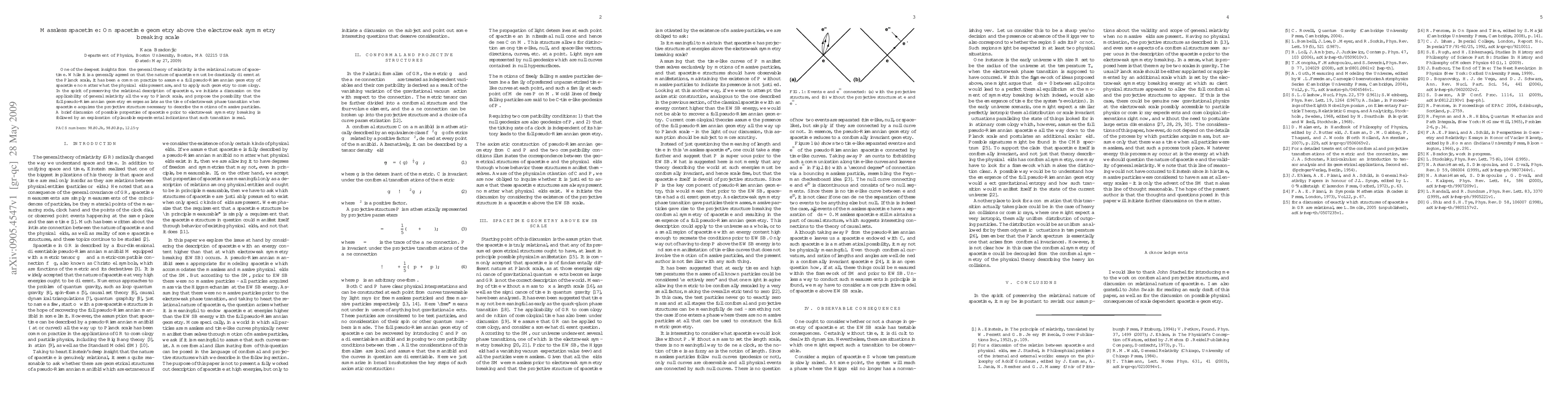 This paper explores the relational nature of spacetime and questions the applicability of general relativity's pseudo-Riemannian geometry below the Planck scale. It proposes that spacetime geometry emerges at the electroweak phase transition, suggesting a massless spacetime prior to this transition.