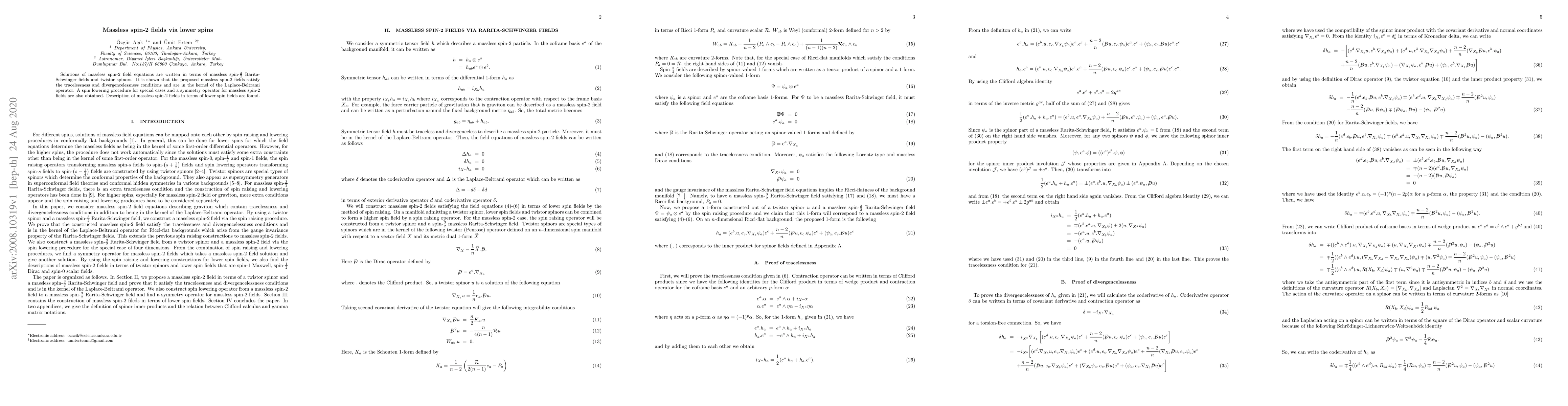 This paper demonstrates how massless spin-2 fields can be expressed using massless spin-$\frac{3}{2}$ Rarita-Schwinger fields and twistor spinors, satisfying tracelessness and divergencelessness conditions, and lying in the kernel of the Laplace-Beltrami operator. It also introduces a spin lowering procedure and a symmetry operator for these fields.