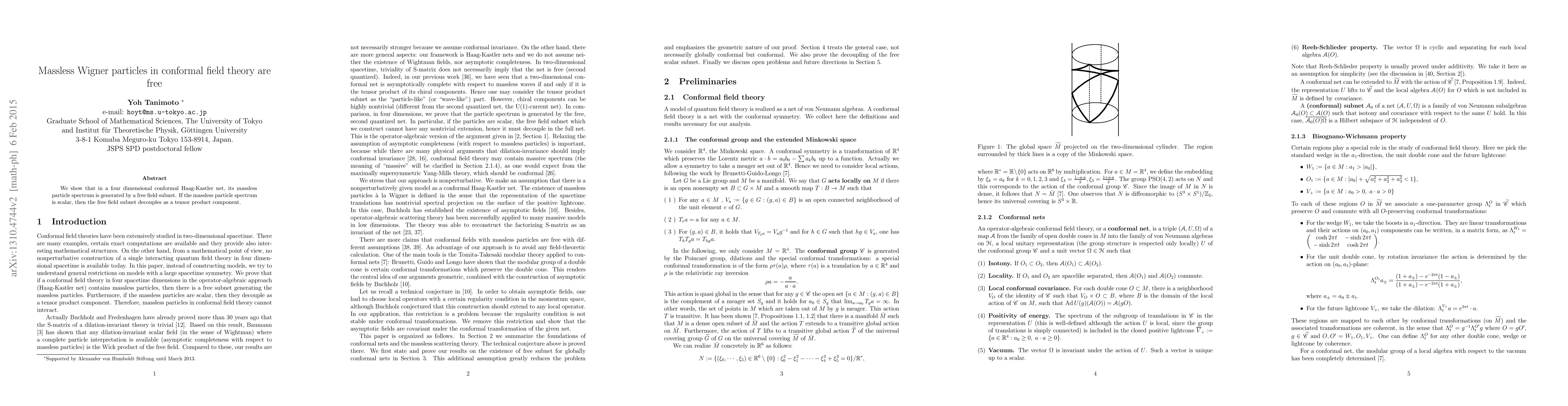 We show that in a four dimensional conformal Haag-Kastler net, its massless particle spectrum is generated by a free field subnet. If the massless particle spectrum is scalar, then the free field subnet decouples as a tensor product component.