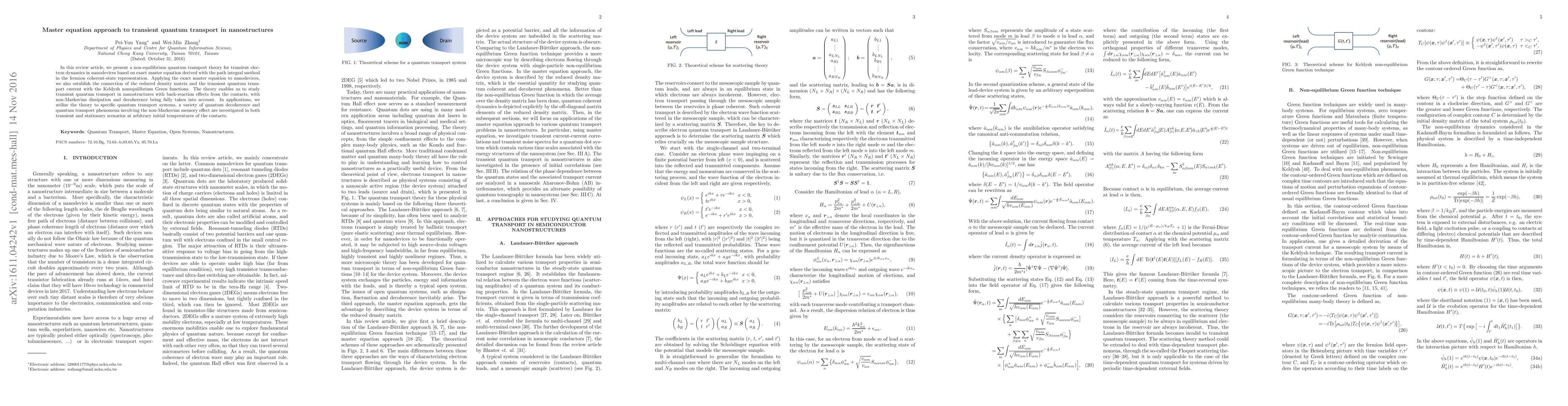 This review develops a non-equilibrium quantum transport theory for transient electron dynamics in nanodevices using an exact master equation derived from the path integral method. It connects transient quantum transport current with Keldysh nonequilibrium Green functions, accounting for back-reaction, non-Markovian dissipation, and decoherence effects.