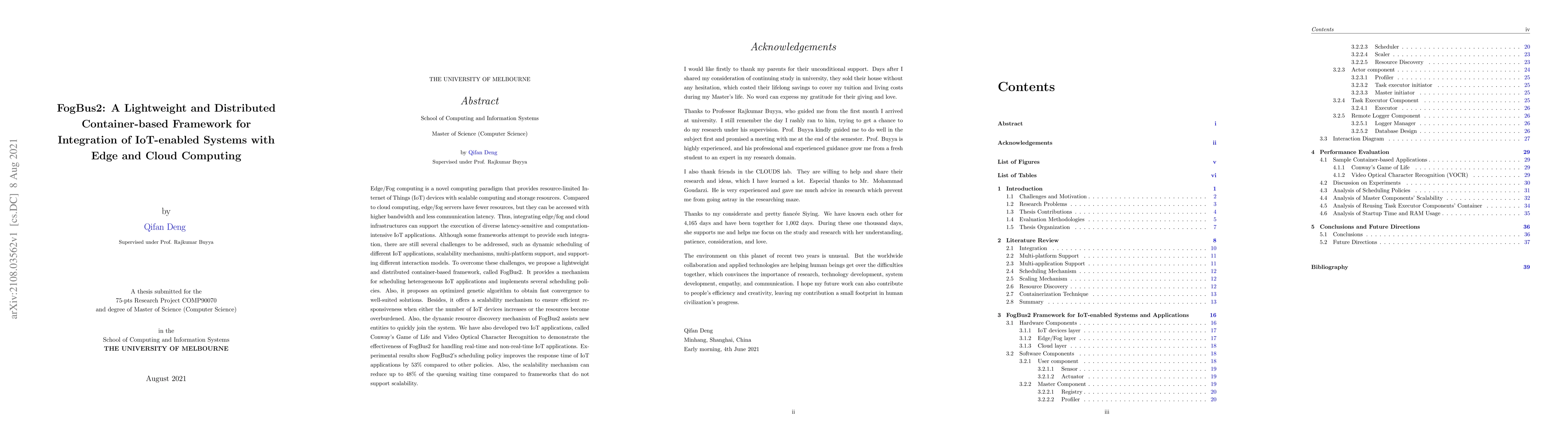 Edge/Fog computing is a novel computing paradigm that provides resource-limited Internet of Things (IoT) devices with scalable computing and storage resources. Compared to cloud computing, edge/fog servers have fewer resources, but they can be accessed with higher bandwidth and less communication latency. Thus, integrating edge/fog and cloud infrastructures can support the execution of diverse latency-sensitive and computation-intensive IoT applications. Although some frameworks attempt to provide such integration, there are still several challenges to be addressed, such as dynamic scheduling of different IoT applications, scalability mechanisms, multi-platform support, and supporting different interaction models. To overcome these challenges, we propose a lightweight and distributed container-based framework, called FogBus2. It provides a mechanism for scheduling heterogeneous IoT applications and implements several scheduling policies. Also, it proposes an optimized genetic algorithm to obtain fast convergence to well-suited solutions. Besides, it offers a scalability mechanism to ensure efficient responsiveness when either the number of IoT devices increases or the resources become overburdened. Also, the dynamic resource discovery mechanism of FogBus2 assists new entities to quickly join the system. We have also developed two IoT applications, called Conway's Game of Life and Video Optical Character Recognition to demonstrate the effectiveness of FogBus2 for handling real-time and non-real-time IoT applications. Experimental results show FogBus2's scheduling policy improves the response time of IoT applications by 53\% compared to other policies. Also, the scalability mechanism can reduce up to 48\% of the queuing waiting time compared to frameworks that do not support scalability.