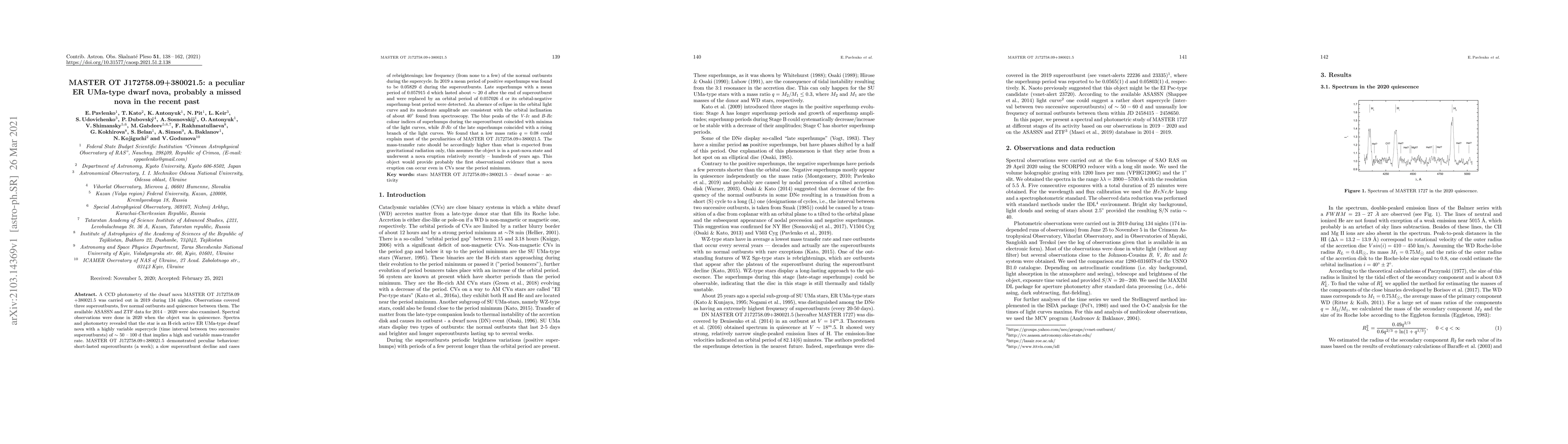 Astronomers discovered a peculiar ER UMa-type dwarf nova with unusual superoutburst behavior, suggesting it may have missed a recent nova event; the star's high mass-transfer rate and low mass ratio could provide evidence for a recent nova eruption.