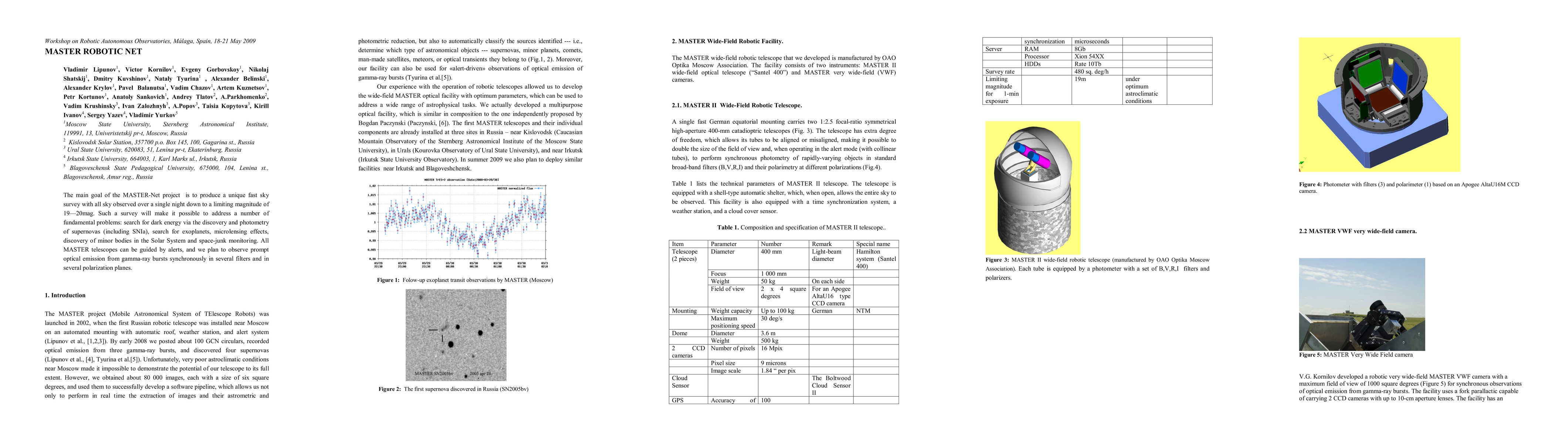 The main goal of the MASTER-Net project is to produce a unique fast sky survey with all sky observed over a single night down to a limiting magnitude of 19 - 20mag. Such a survey will make it possible to address a number of fundamental problems: search for dark energy via the discovery and photometry of supernovas (including SNIa), search for exoplanets, microlensing effects, discovery of minor bodies in the Solar System and space-junk monitoring. All MASTER telescopes can be guided by alerts, and we plan to observe prompt optical emission from gamma-ray bursts synchronously in several filters and in several polarization planes.